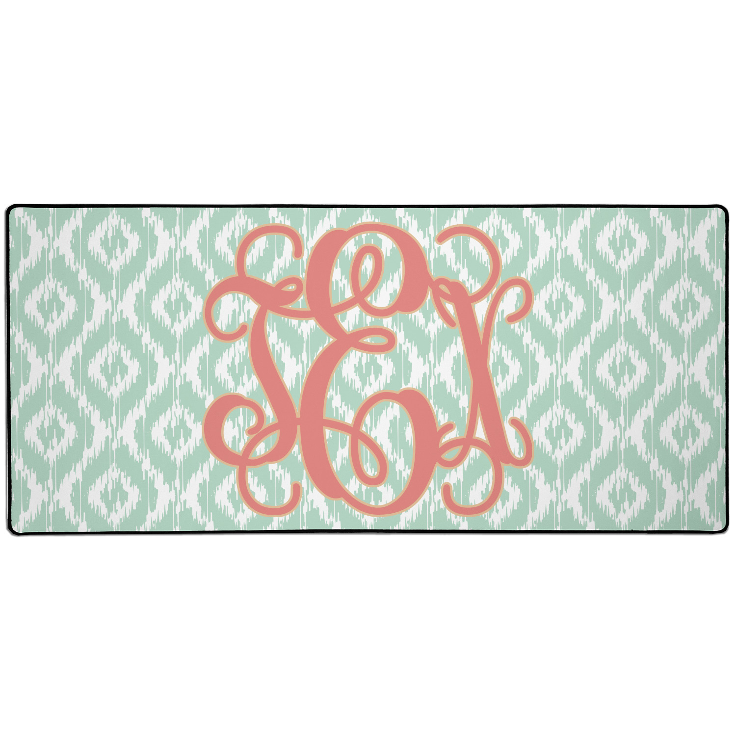 Are you a monogram-a-holic? Then, this design is perfect for you. With a subtle mint green ikat background, your monogram takes center stage in a bold coral. Let us indulge your obsession with this precious design!!