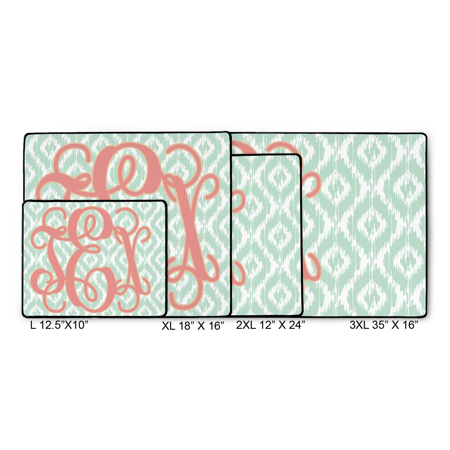 Are you a monogram-a-holic? Then, this design is perfect for you. With a subtle mint green ikat background, your monogram takes center stage in a bold coral. Let us indulge your obsession with this precious design!!