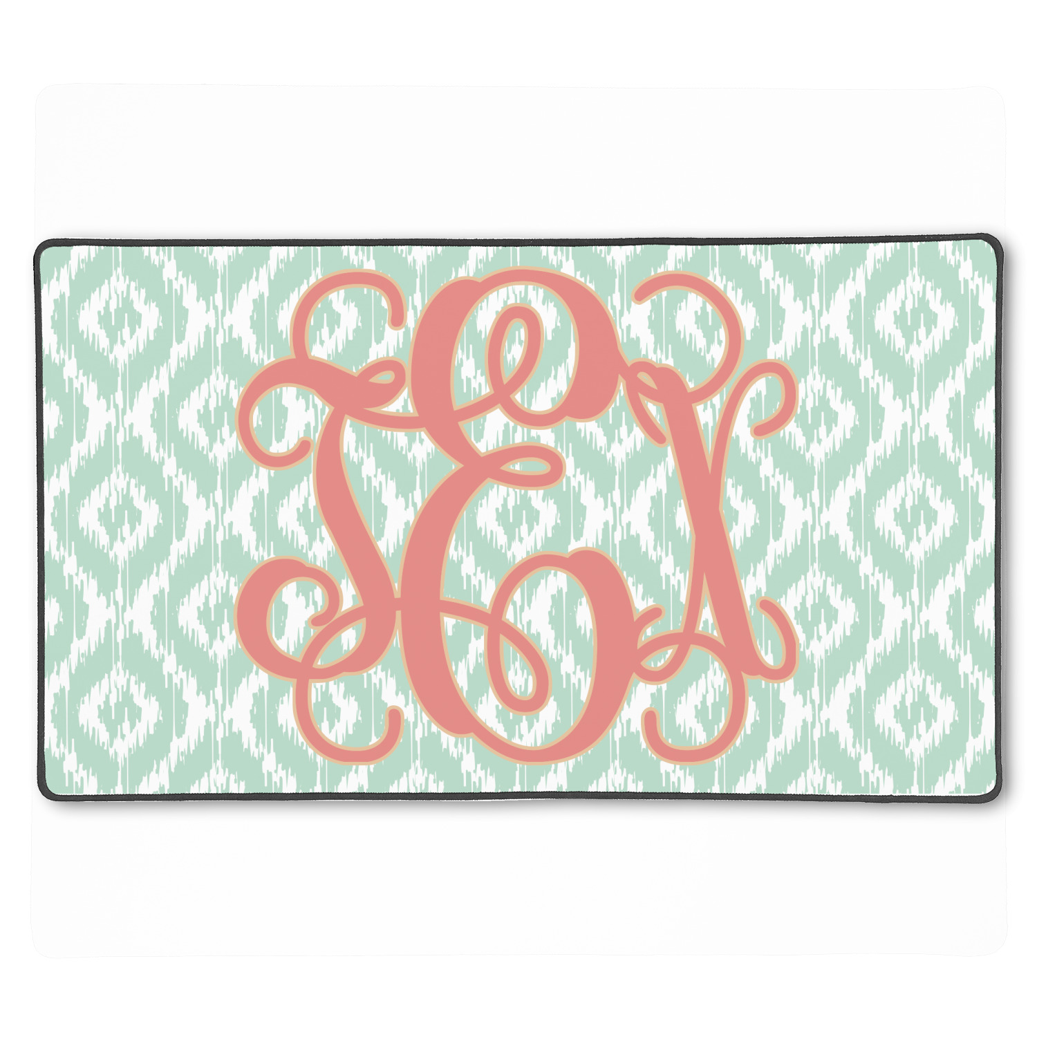 Are you a monogram-a-holic? Then, this design is perfect for you. With a subtle mint green ikat background, your monogram takes center stage in a bold coral. Let us indulge your obsession with this precious design!!