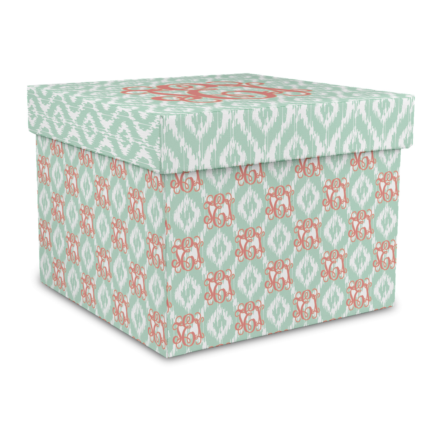 Are you a monogram-a-holic? Then, this design is perfect for you. With a subtle mint green ikat background, your monogram takes center stage in a bold coral. Let us indulge your obsession with this precious design!!