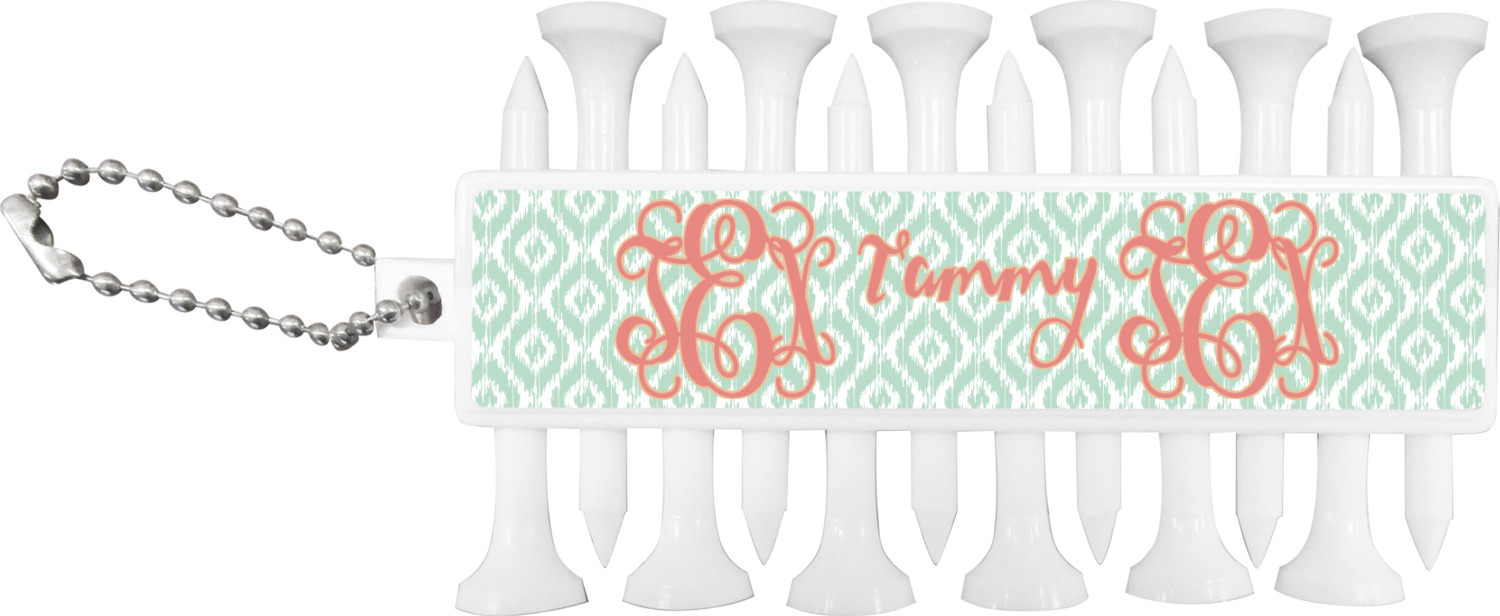 With 12 tees on a lightweight, portable key chain, it almost ensures a great 18 holes. Our tees are made of white plastic and are a little over 2". Design the front and the back of the golf tee holder. Pick from over a hundred designs, colors, and personalization styles! The set even comes with three removable ball markers as well!