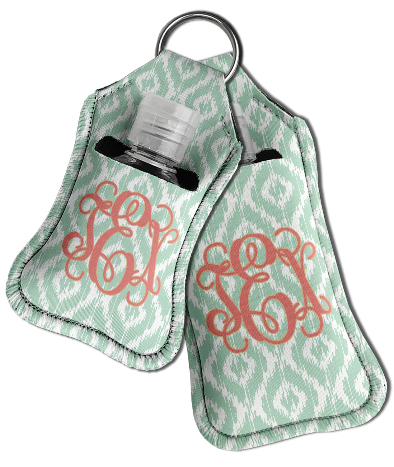 Each hand sanitizer holder comes with its own empty travel-sized, refillable hand sanitizer sure to fit snug in your customized sanitizer case! Our hand sanitizer cases are a durable, yet soft neoprene material sure to last any daily activities or travel agenda. Customize and personalize a hand sanitizer bottle holder with one of our two sizes - small (4.25" x 2.25") or large (5.5" x 2.5"). Each travel sanitizer holder comes with a keyring for attachment on bags, keys, or more!