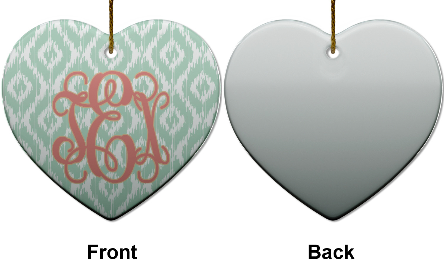 Have a happy holiday and share the joy of Christmas with your loved ones by hanging up personalized ceramic ornaments! Ornaments add a touch of who you are and the things you love onto the Christmas tree! Create custom ornaments for the kids and have them hang up their own star with their name, or pay remembrance this holiday to missed loved ones with our ceramic heart ornament. Browse many of our unique designs and customize them the way you'd like! From monograms, logos, and patterns, we have it all! You can even upload a photo of your family for us to print onto the ornament! The possibilities are endless!