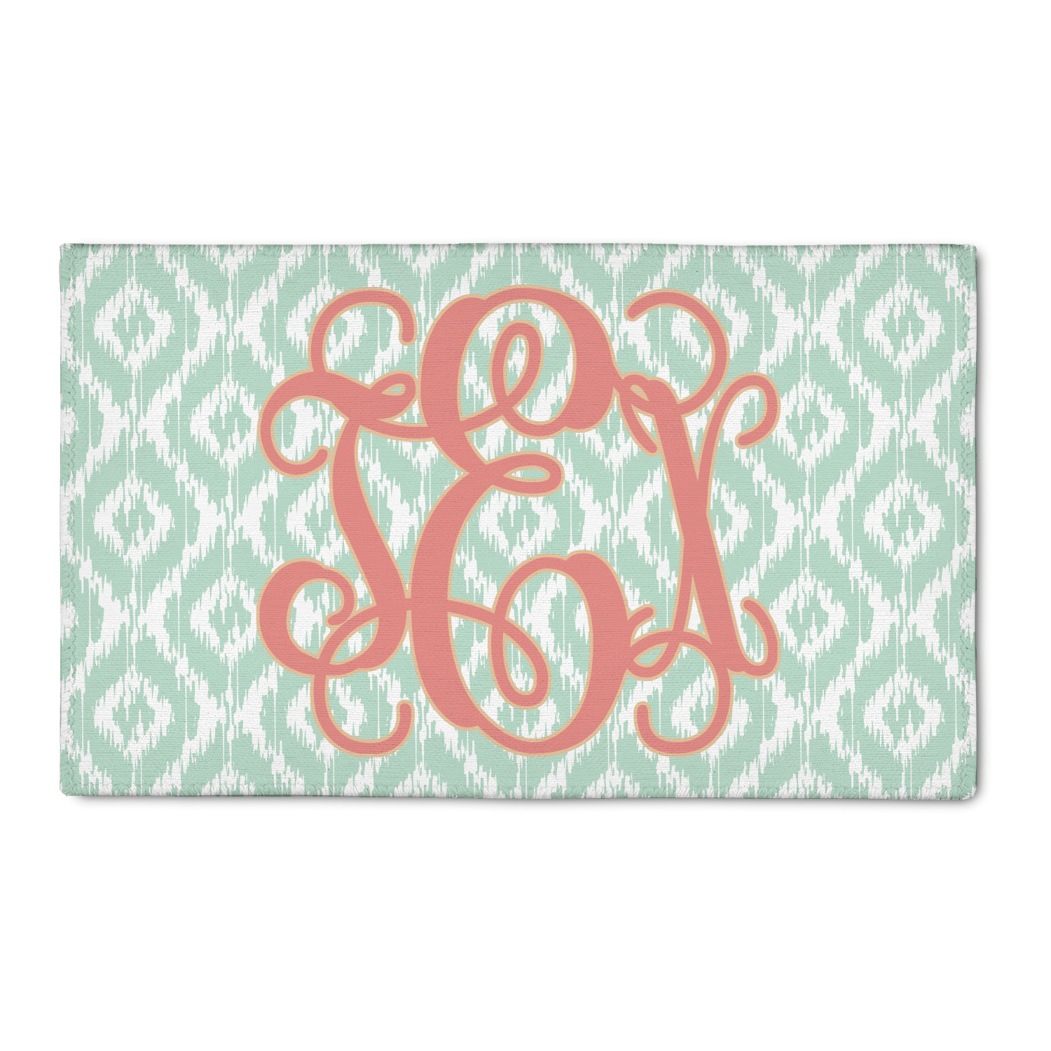 Are you a monogram-a-holic? Then, this design is perfect for you. With a subtle mint green ikat background, your monogram takes center stage in a bold coral. Let us indulge your obsession with this precious design!!