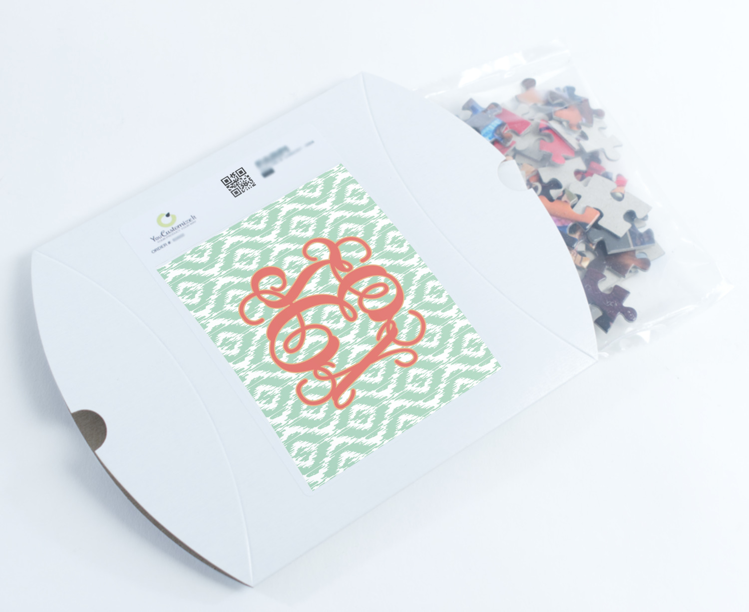 You can also upload your logo or art that you or your kids drew. To create more challenging jigsaw puzzles, you can create a pattern from with your logo or artwork. You can also add other elements such as text or personalization.