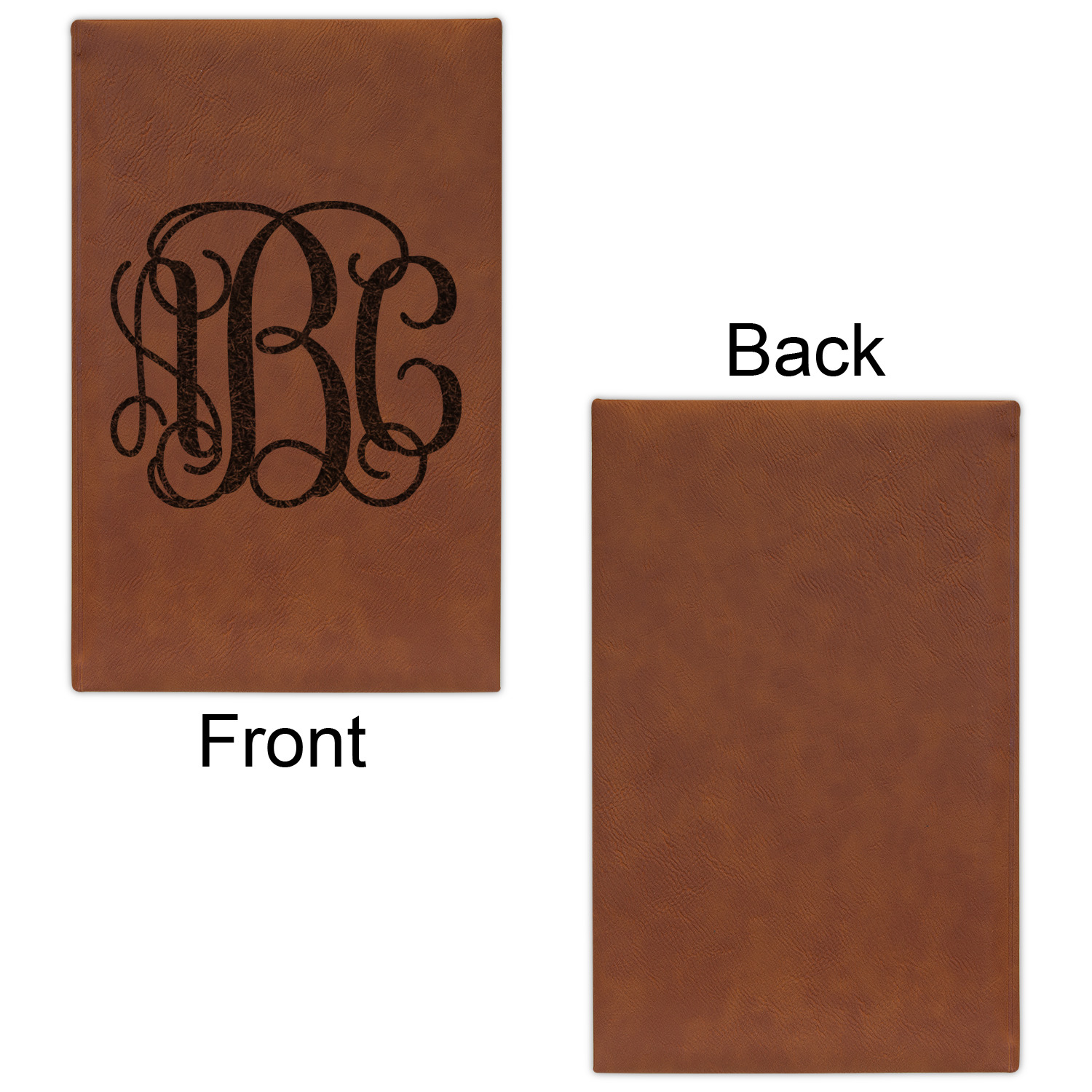 The faux leather covers are a rich cognac / rawhide color and can be customized with your design. From a simple name or monogram or a logo to a detailed mandala - the choice for customization & personalization is truly yours. Customize one of our designs or upload your own.