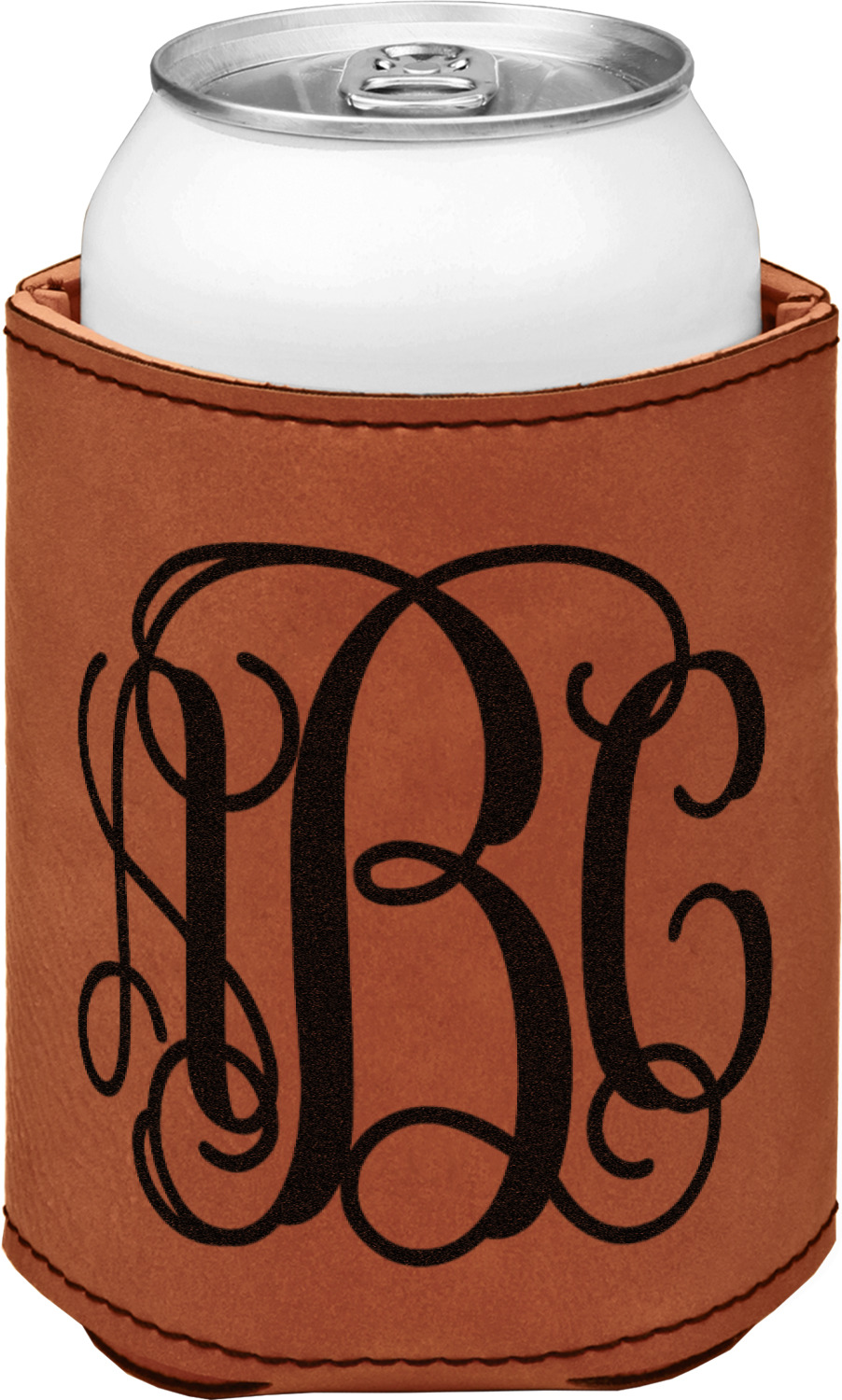 This can sleeve is made from a cognac-brown leatherette and stitched with a sturdy, black thread. A slim padding lines the inside of your can sleeve to allow for a better fit once your drink is inserted. The sleeve itself measures at 4 by 4.5 inches, allowing this custom can sleeve to accommodate most canned drinks. Your personalized design can be engraved on the front and back, or solely the front. When laser-engraved, your design appears as a black coloration which contrasts the leatherette nicely.