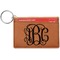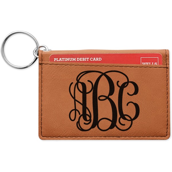 These ID wallet keychains features three pockets on the inside to accommodate your ID and your most frequently used cards. Another pocket occupies the front of the wallet's exterior, and can hold some cash or another card. The wallet is accompanied by a thick metal ring for easy attachment to a belt clip or purse. Each card holder keychain measures at 4.25 by 3 inches and is a beautiful, cognac, medium-brown shade. The personalized monogram, font, or graphic of your choosing is laser engraved into the surface of the wallet, creating a black imprint. We sell these ID wallets in two models: single sided and double sided engraving.