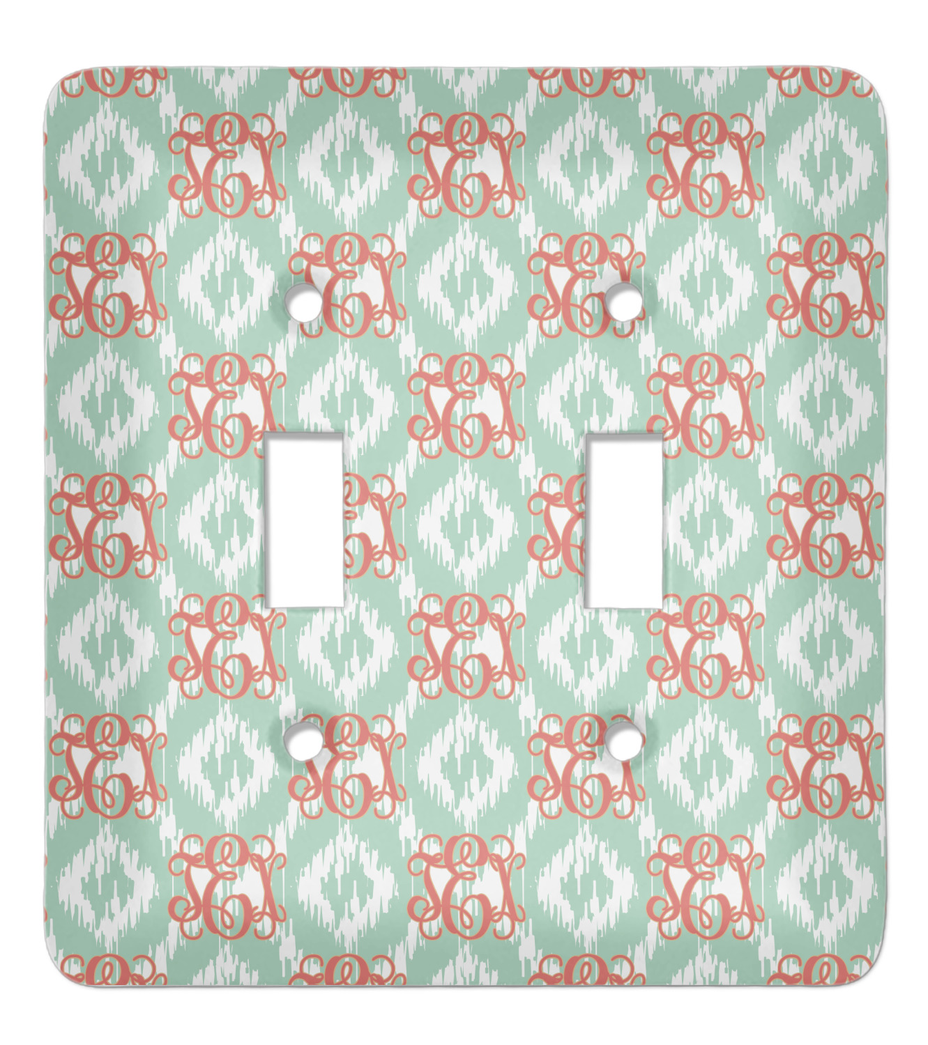 Are you a monogram-a-holic? Then, this design is perfect for you. With a subtle mint green ikat background, your monogram takes center stage in a bold coral. Let us indulge your obsession with this precious design!!