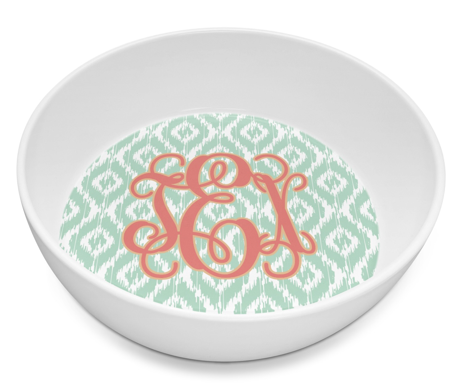Are you a monogram-a-holic? Then, this design is perfect for you. With a subtle mint green ikat background, your monogram takes center stage in a bold coral. Let us indulge your obsession with this precious design!!