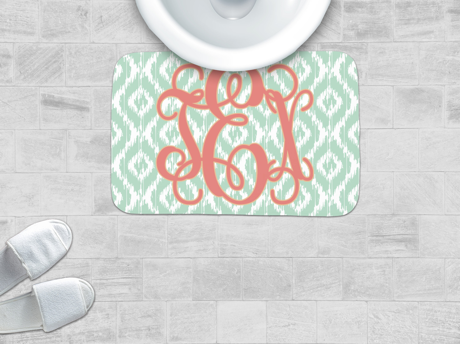 Are you a monogram-a-holic? Then, this design is perfect for you. With a subtle mint green ikat background, your monogram takes center stage in a bold coral. Let us indulge your obsession with this precious design!!