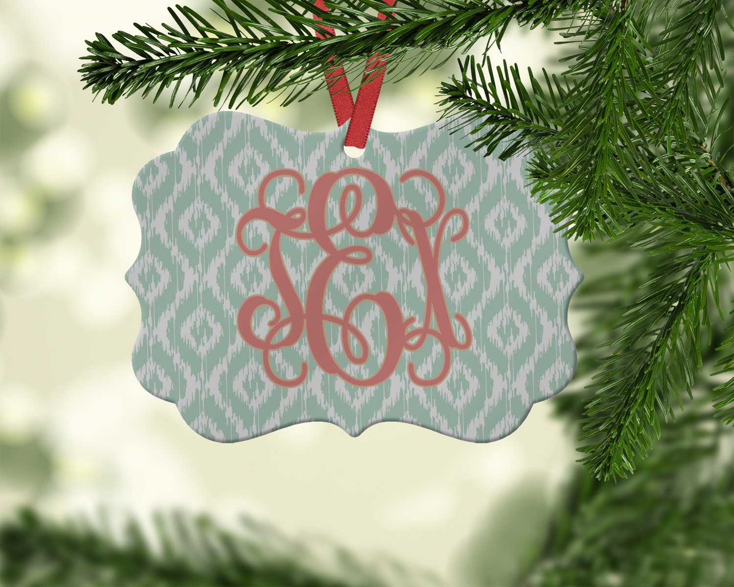 Are you a monogram-a-holic? Then, this design is perfect for you. With a subtle mint green ikat background, your monogram takes center stage in a bold coral. Let us indulge your obsession with this precious design!!