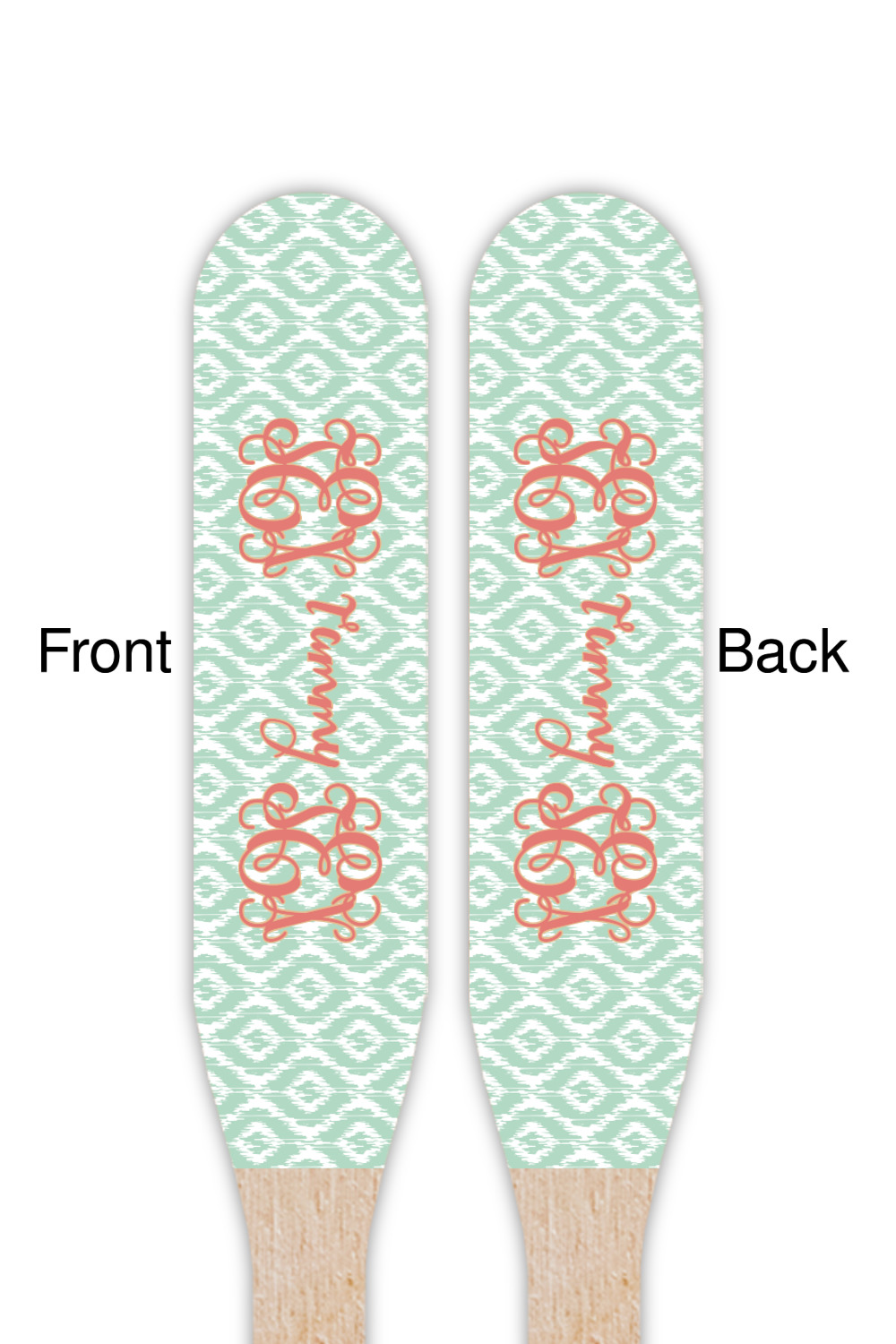 Are you a monogram-a-holic? Then, this design is perfect for you. With a subtle mint green ikat background, your monogram takes center stage in a bold coral. Let us indulge your obsession with this precious design!!