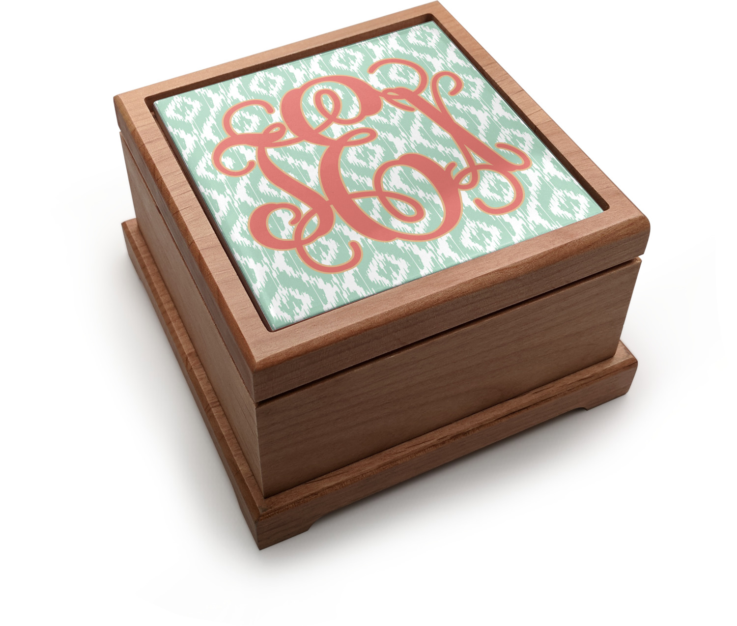 Are you a monogram-a-holic? Then, this design is perfect for you. With a subtle mint green ikat background, your monogram takes center stage in a bold coral. Let us indulge your obsession with this precious design!!