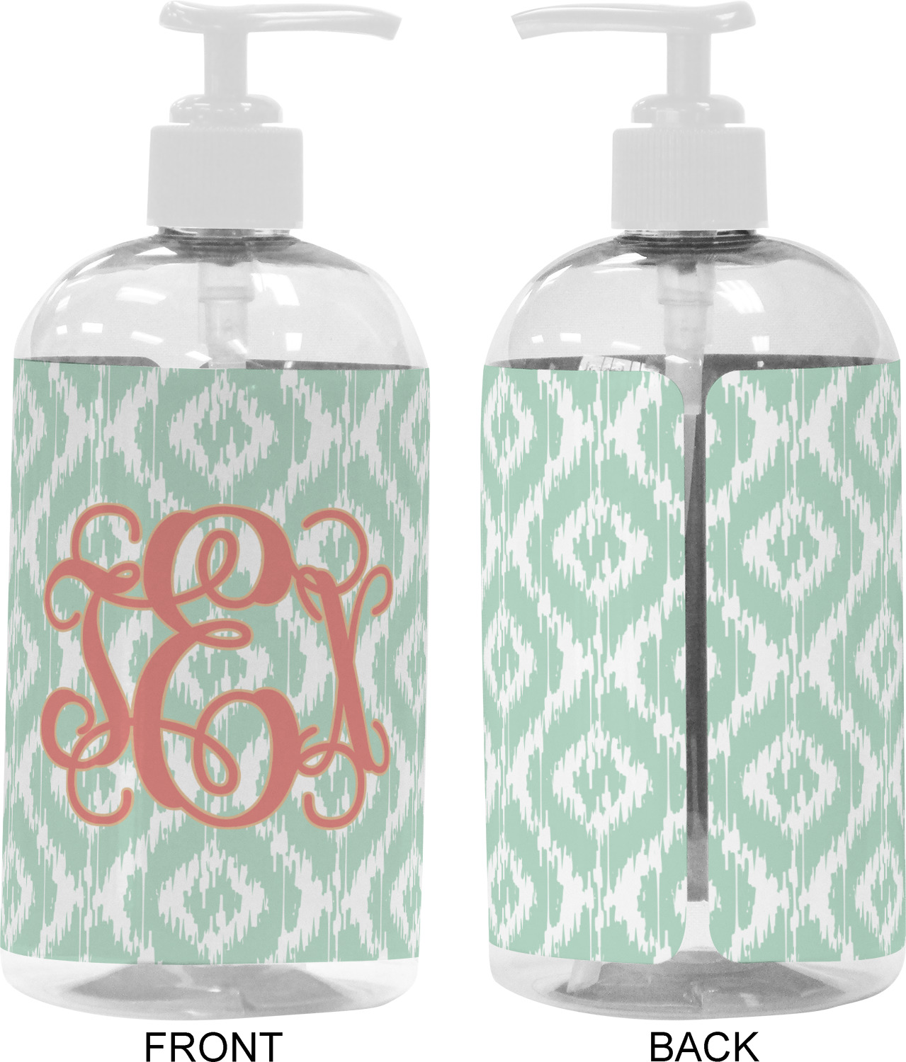 Are you a monogram-a-holic? Then, this design is perfect for you. With a subtle mint green ikat background, your monogram takes center stage in a bold coral. Let us indulge your obsession with this precious design!!