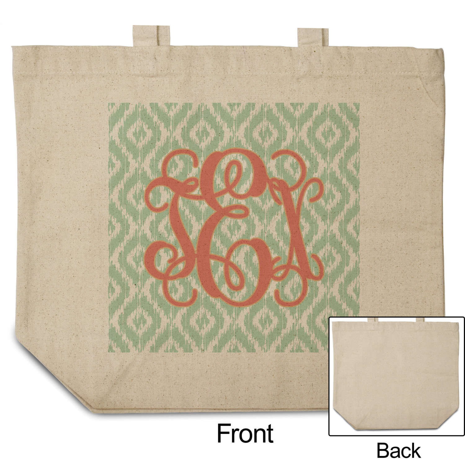 Are you a monogram-a-holic? Then, this design is perfect for you. With a subtle mint green ikat background, your monogram takes center stage in a bold coral. Let us indulge your obsession with this precious design!!