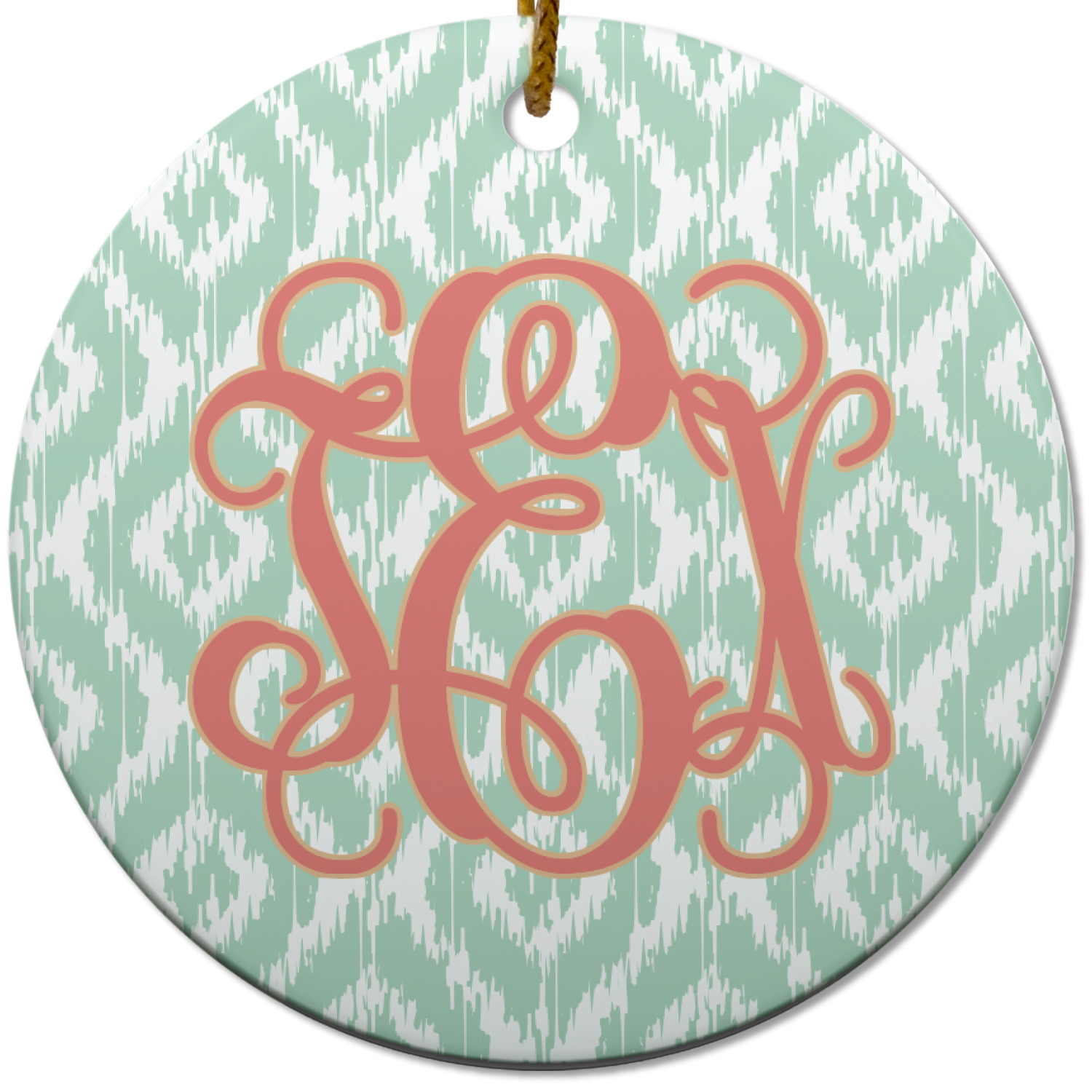 Are you a monogram-a-holic? Then, this design is perfect for you. With a subtle mint green ikat background, your monogram takes center stage in a bold coral. Let us indulge your obsession with this precious design!!