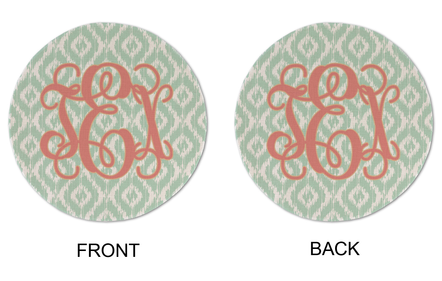Are you a monogram-a-holic? Then, this design is perfect for you. With a subtle mint green ikat background, your monogram takes center stage in a bold coral. Let us indulge your obsession with this precious design!!