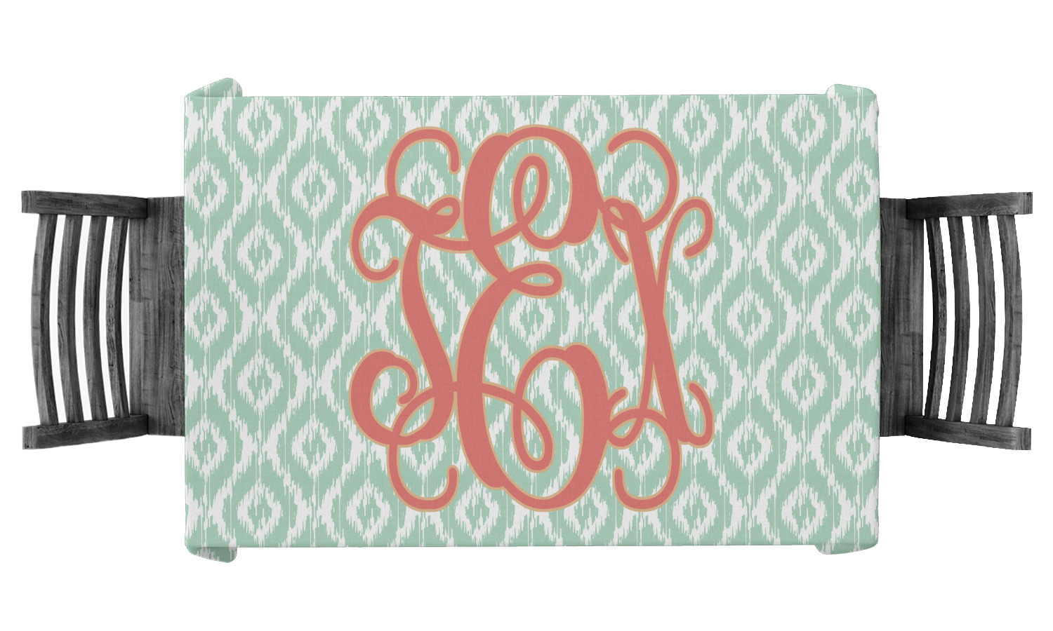 Are you a monogram-a-holic? Then, this design is perfect for you. With a subtle mint green ikat background, your monogram takes center stage in a bold coral. Let us indulge your obsession with this precious design!!