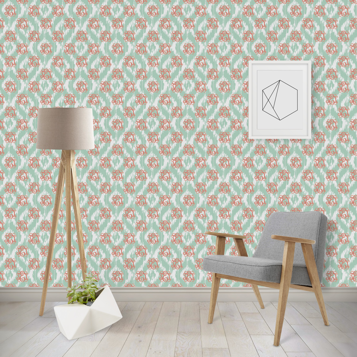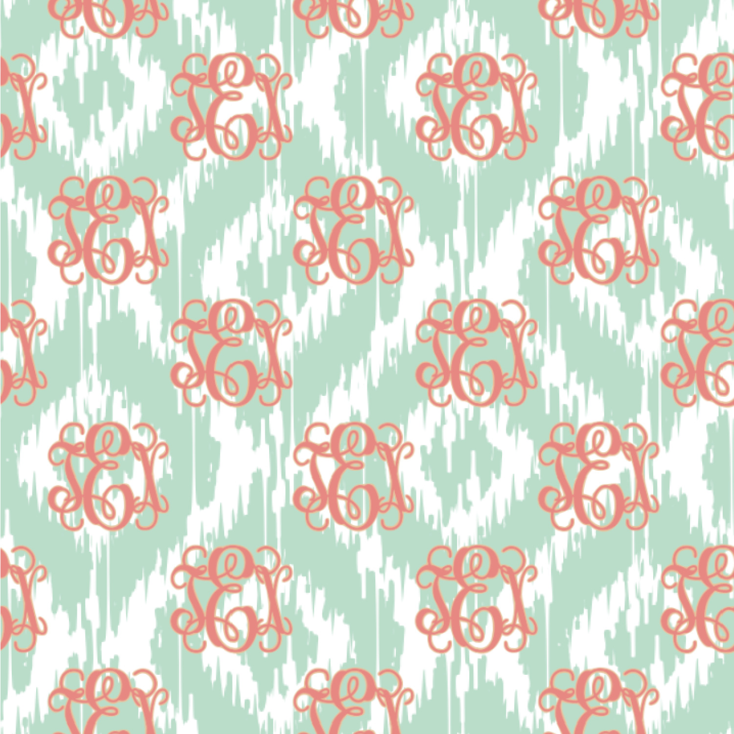 Are you a monogram-a-holic? Then, this design is perfect for you. With a subtle mint green ikat background, your monogram takes center stage in a bold coral. Let us indulge your obsession with this precious design!!