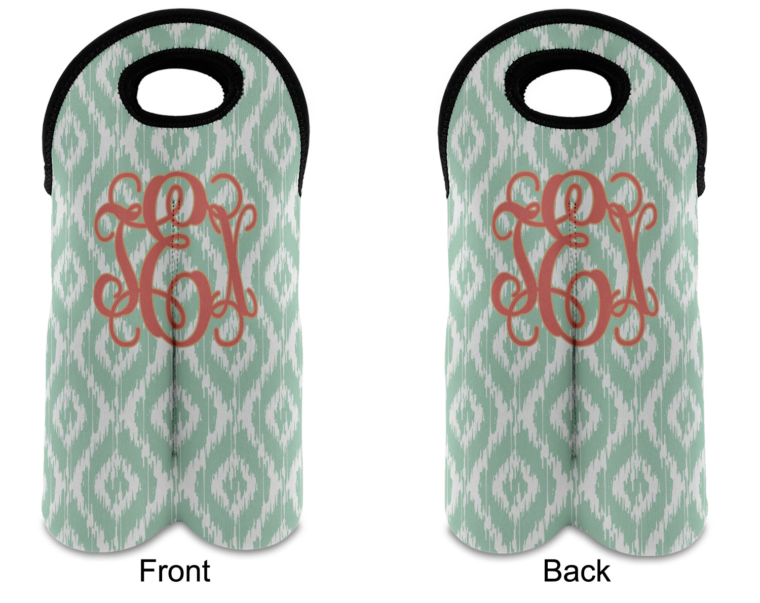 These tote bags are insulated to keep the bottles cold and have a stitched separation down the middle and double handles to keep the two bottles safe and secure during travels.