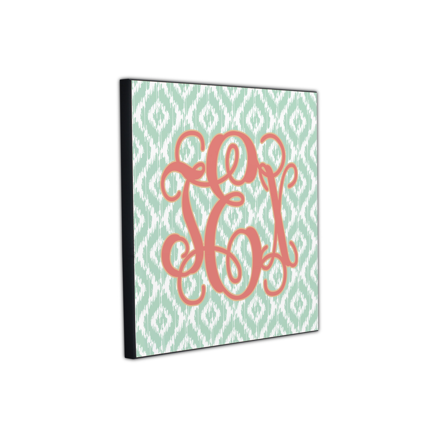 Are you a monogram-a-holic? Then, this design is perfect for you. With a subtle mint green ikat background, your monogram takes center stage in a bold coral. Let us indulge your obsession with this precious design!!