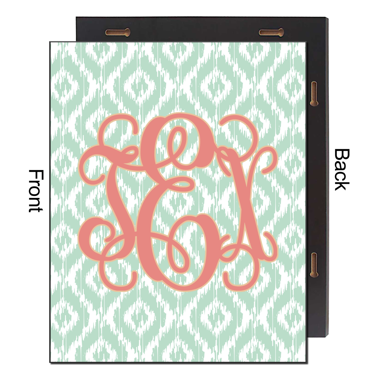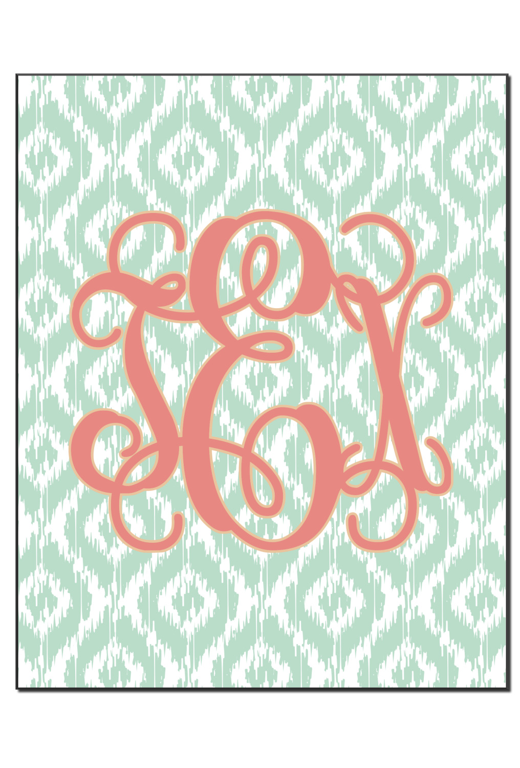 Are you a monogram-a-holic? Then, this design is perfect for you. With a subtle mint green ikat background, your monogram takes center stage in a bold coral. Let us indulge your obsession with this precious design!!