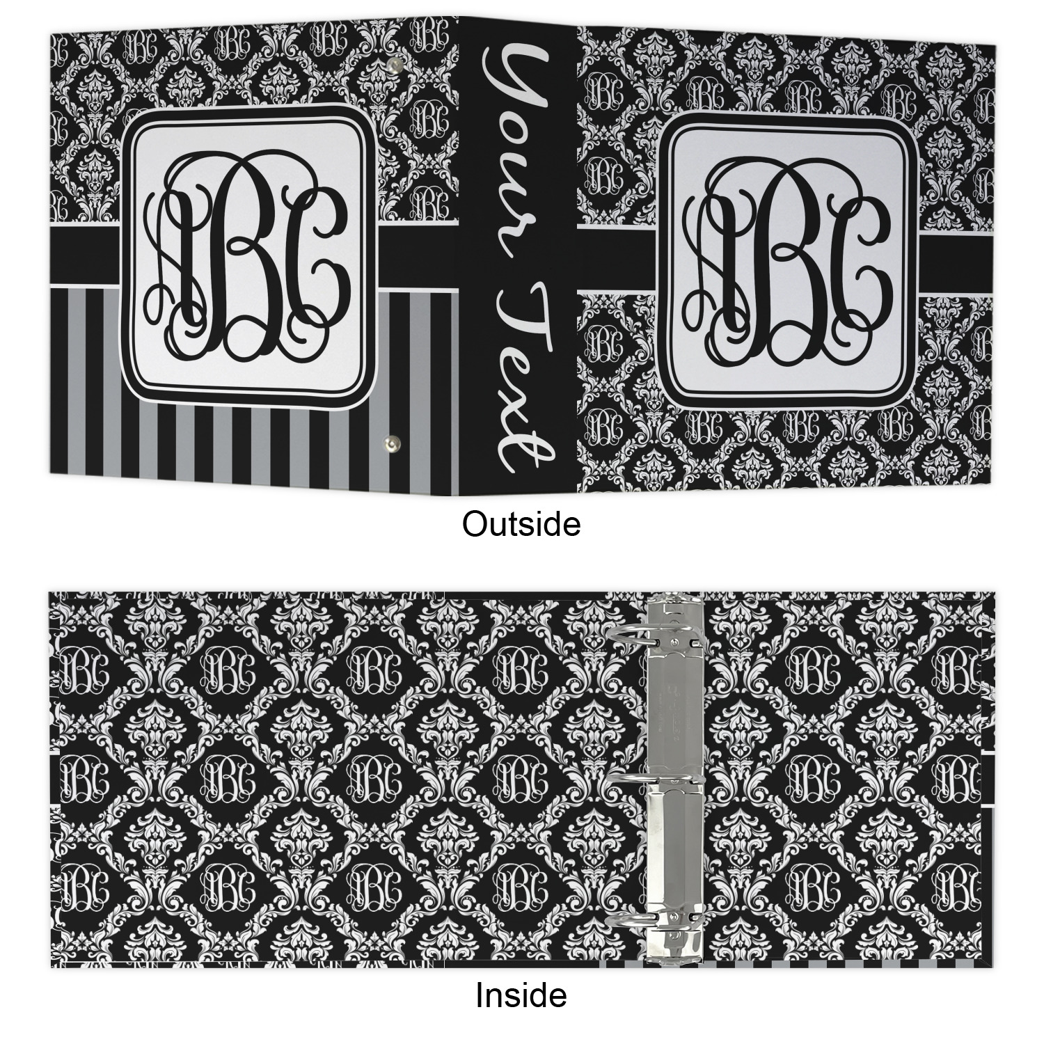The outside is printed in 3 sections - front cover, spine and back cover - while the inside is printed in a full single print of your choice. The inside boasts a high quality nickel plated binder mechanism with a trigger opening function and is secured to the cardboard binder with posts and screws.