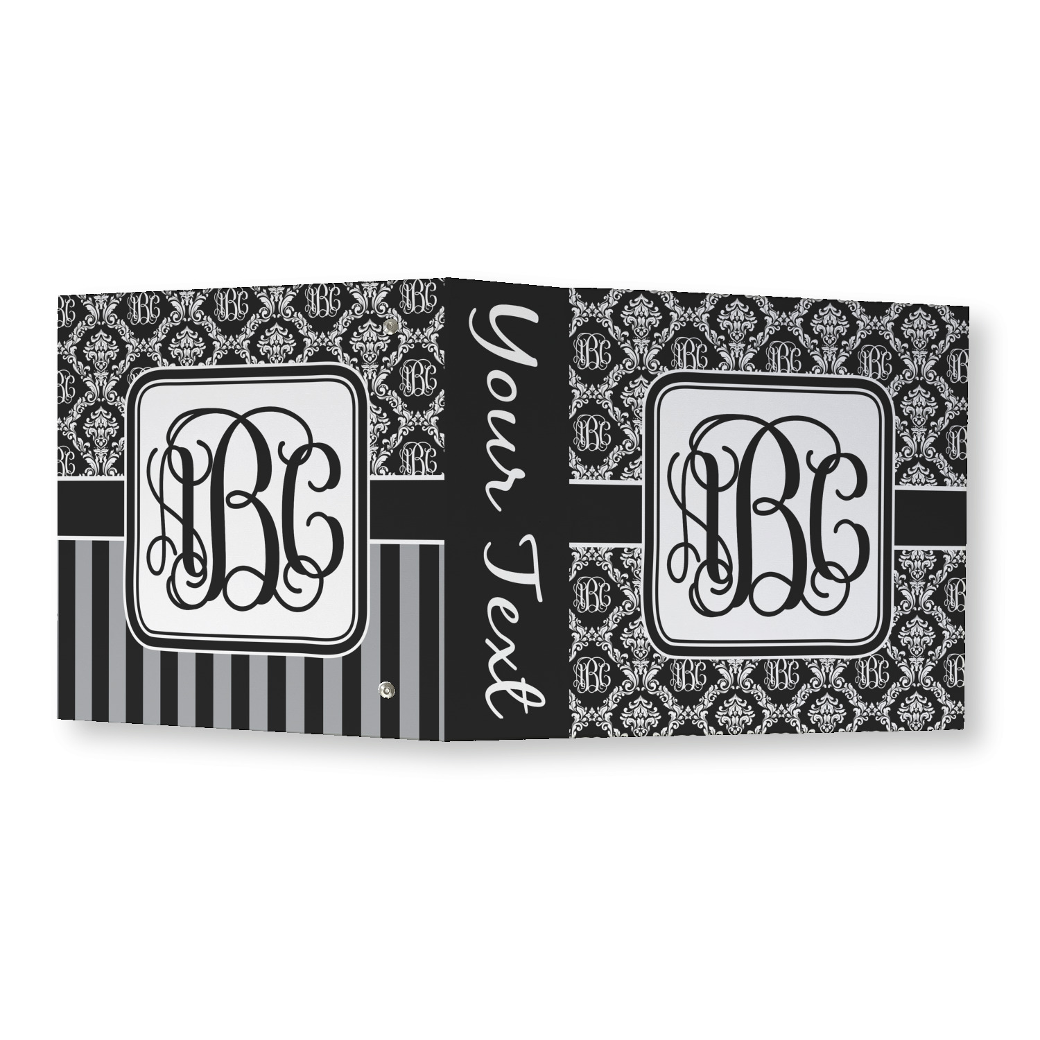 Made from a sturdy cardboard base with a full high quality canvas textured vinyl wrap with the design of your choice. Unlike our standard 3-ring binder with the full wrap design your artwork wraps from the front and back and into the inside of the binder.