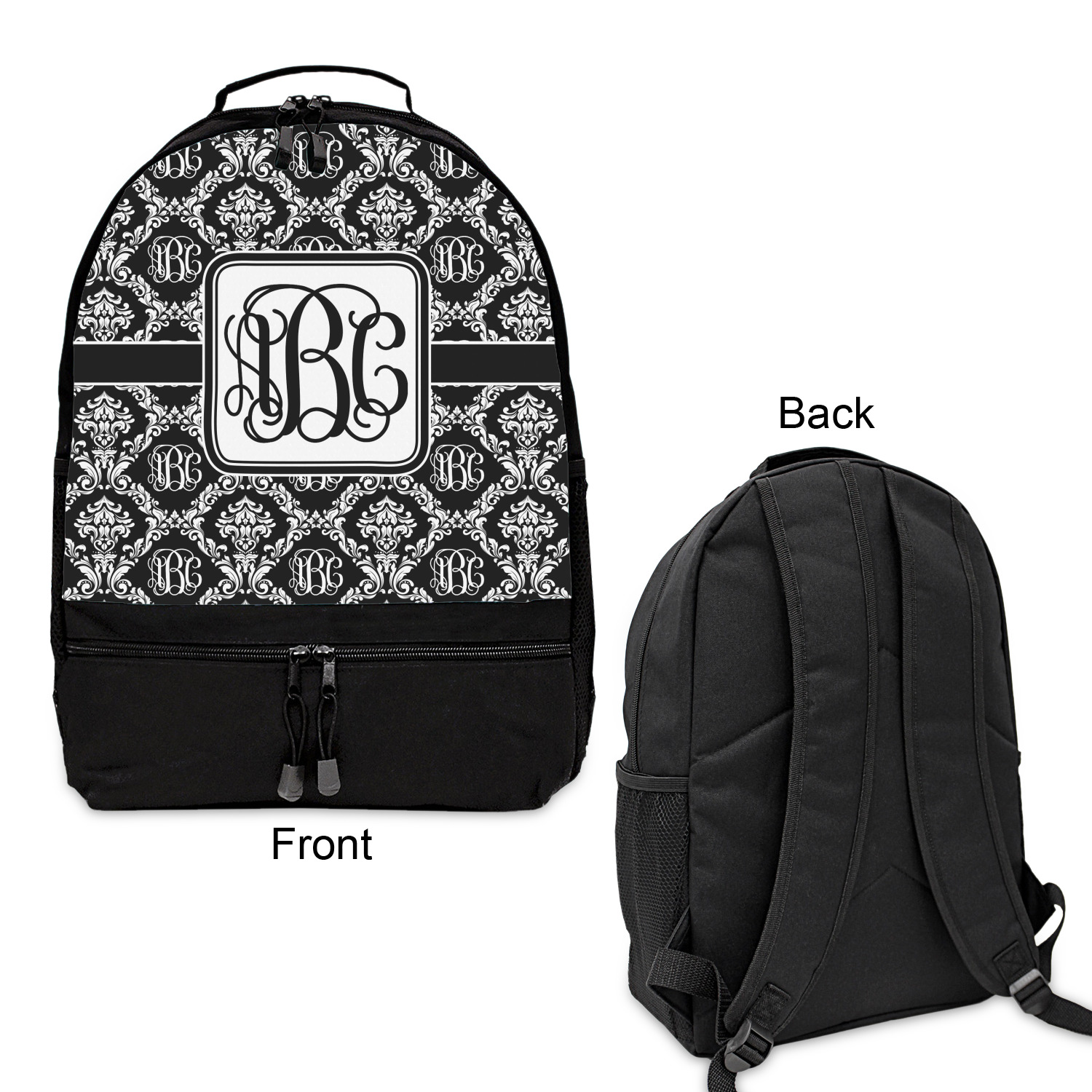 By far our most popular print. This design is a combination of two classics, damask and interlocking monogram. Put them together and you get this very unique design that has your interlocking monogram as part of the damask pattern.