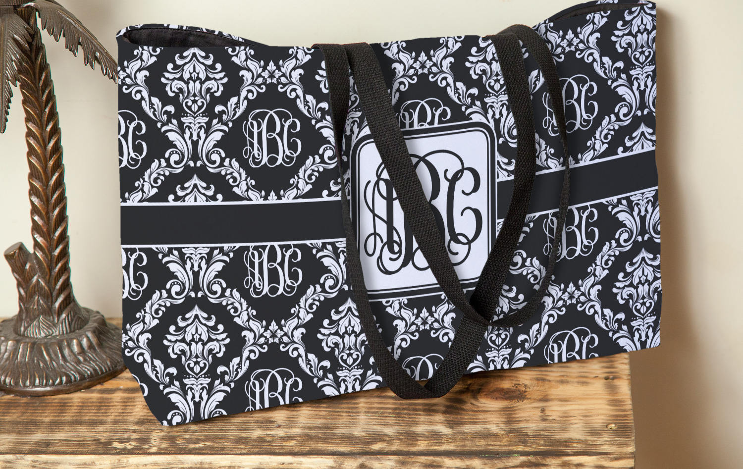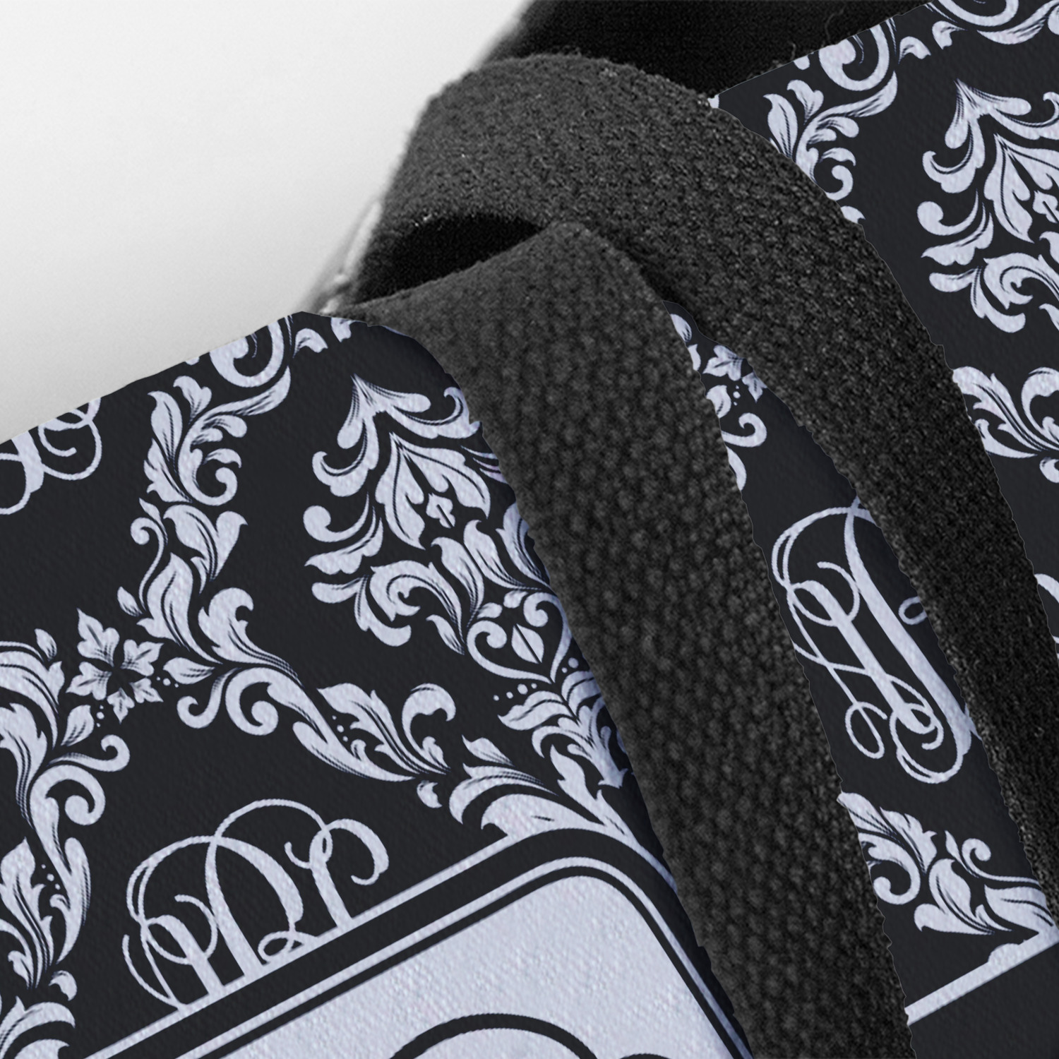 By far our most popular print. This design is a combination of two classics, damask and interlocking monogram. Put them together and you get this very unique design that has your interlocking monogram as part of the damask pattern.