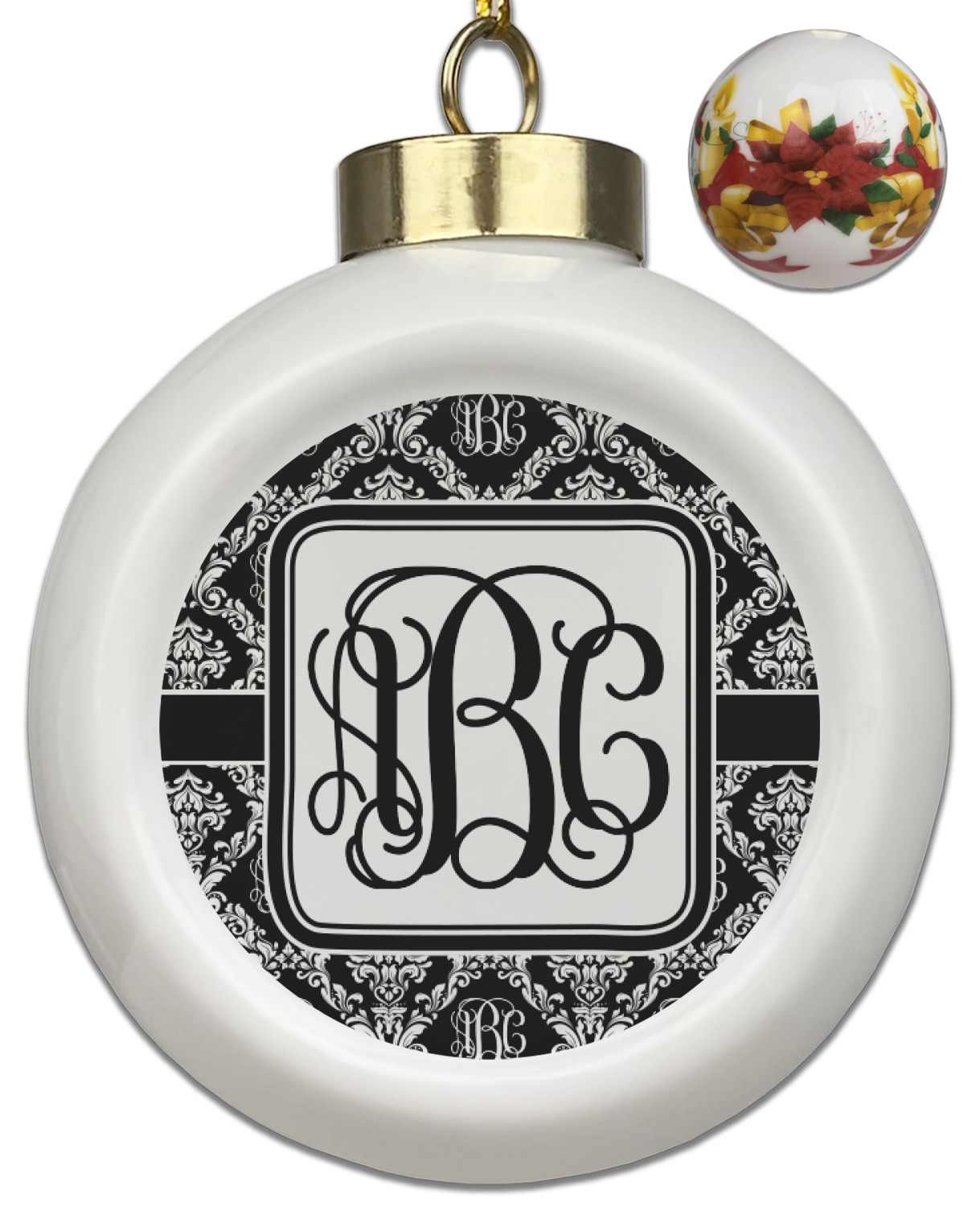 Our Christmas ornaments are a unique ceramic ball shape with a twist as it has a flat face to display your custom design! Select from one of our two design types - Christmas Tree or Poinsettia Garland - to adorn the curved back of your personal design. Each ornament measures 3H x 2.5W x 2D accompanied with a gold string accent for finishing touches to hang on your beautiful Christmas tree!