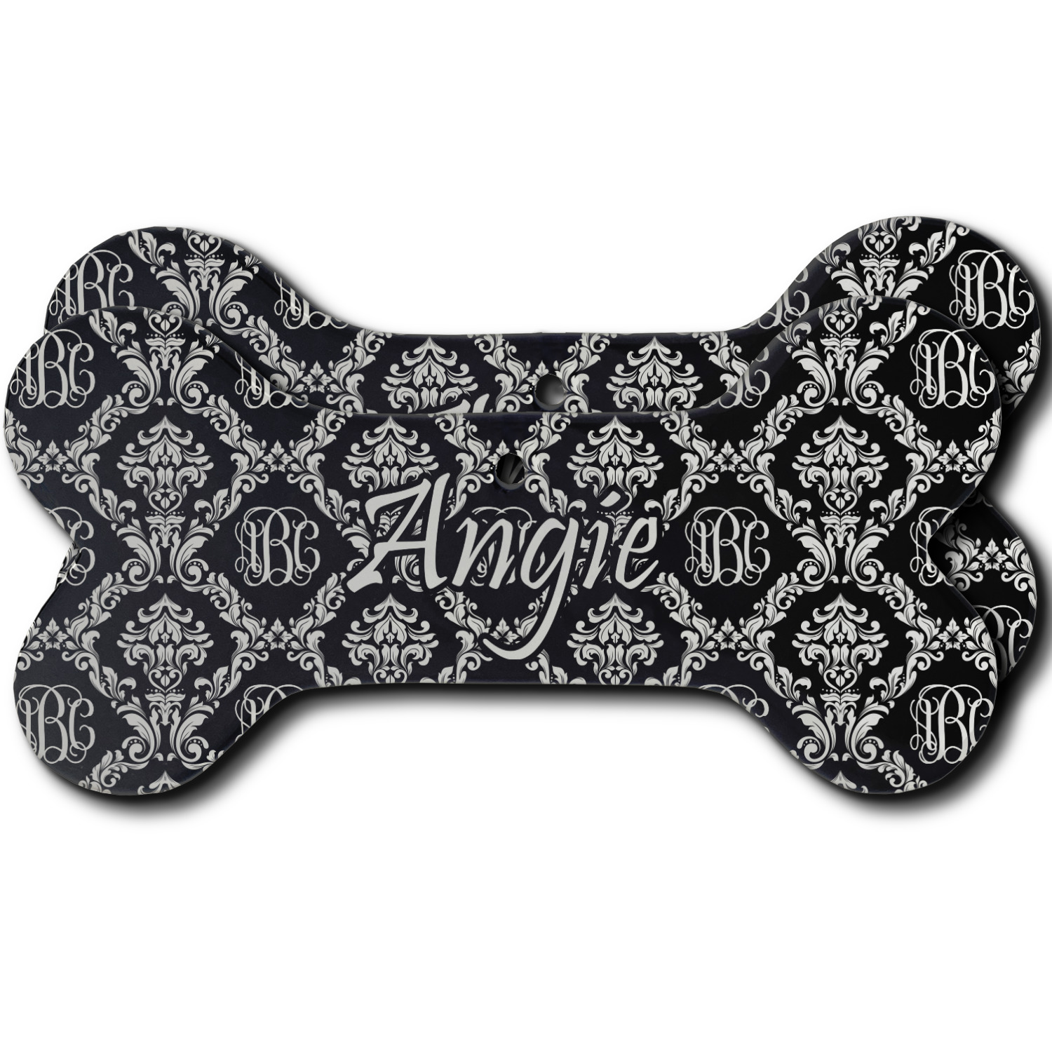 By far our most popular print. This design is a combination of two classics, damask and interlocking monogram. Put them together and you get this very unique design that has your interlocking monogram as part of the damask pattern.