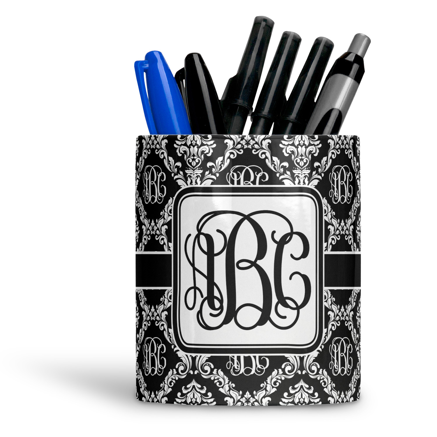Made from white ceramic, this pen holder displays your personalized design across its surface. This pen organizer measures at 3.75" high by 3.25 inches diameter and has ample space for several pens, pencils, scissors, markers, and more! This is also a multipurpose accessory; you can use it to store makeup brushes, other utensils, and more!