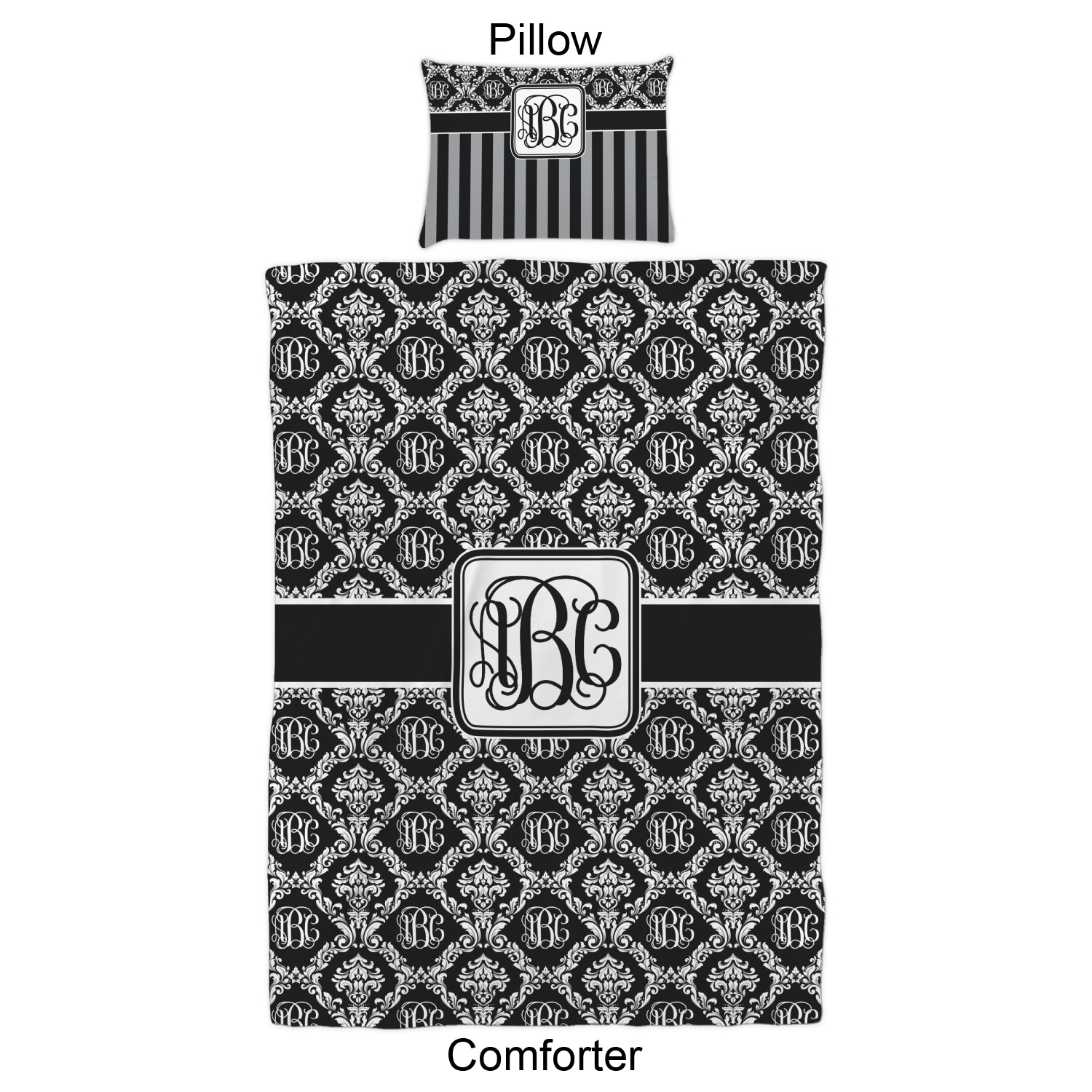 We have hundreds of different design templates for you to choose from Each design can be customized to your exact specifications. Not only can you customize the comforter, but you can also customize each pillow sham e.g. for a queen comforter set you have have Mr & Mrs pillow shams with the last name on comforter.