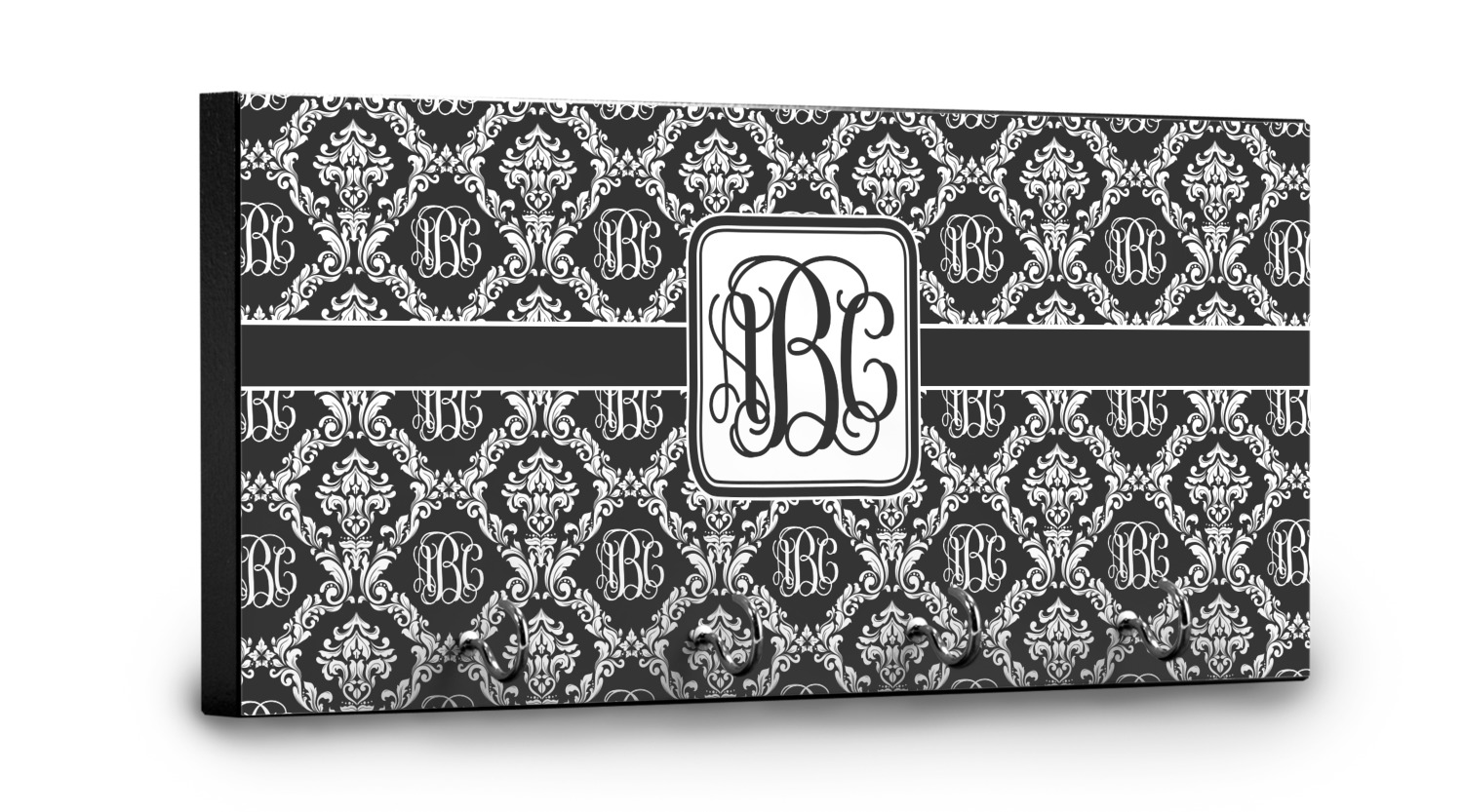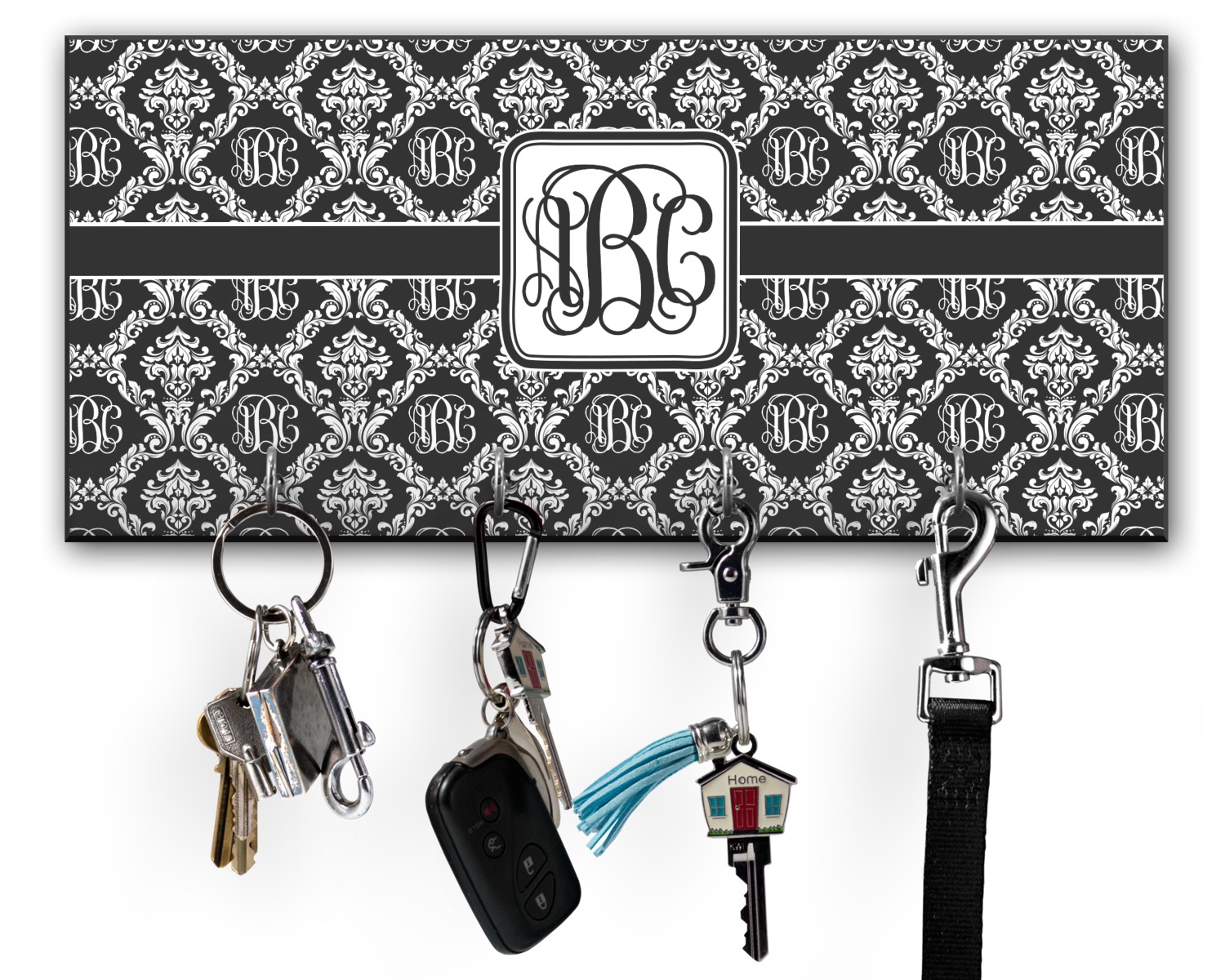 This 11" x 5" key hanger is made of sturdy wood and has four metal hooks lining the bottom. This is the perfect size for a family with several drivers. Not only can you hang keys on it though, but pet leashes and other small items. The board is black on the sides and back and is printed with the design of your choice on the front.