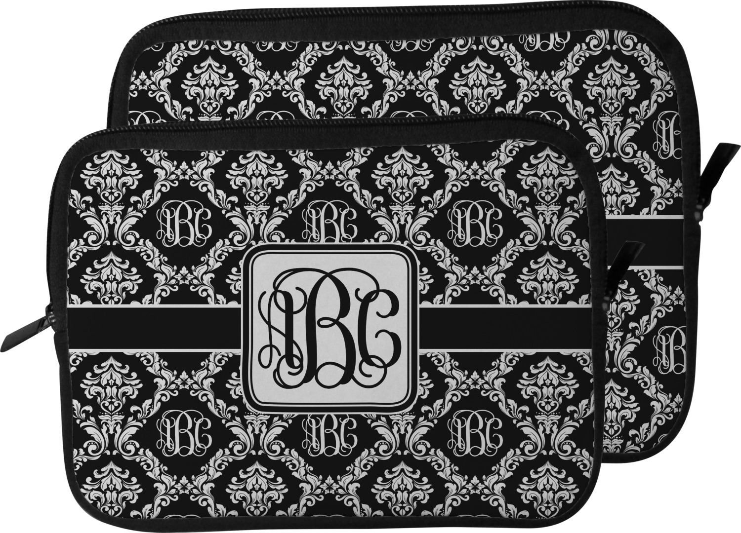 These laptop covers are built from a water-resistant, cushioned neoprene. We display your personalized design on the front of this computer sleeve, while the other sides are simply the black color of the neoprene fabric. A zipper lines the top half of this case, for direct access to your device. For added protection, the interior of this neoprene laptop sleeve is lined with a padded, minky-like material.