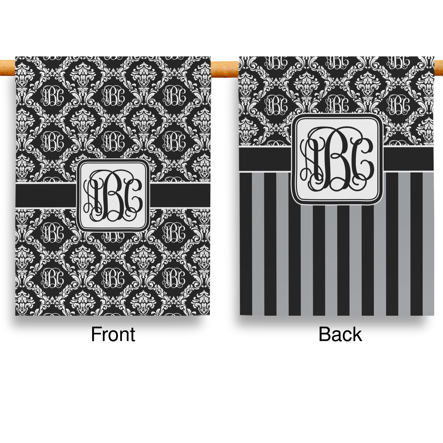 These custom garden flags are made of a durable, double-ply, polyester weave, allowing them to withstand the elements year round. The small flags measure at approximately 12 by 18 inches. The large flags measure out to 28 by 37 inches. You can order these decorative flags with your customization printed on the front only, or the front and back.