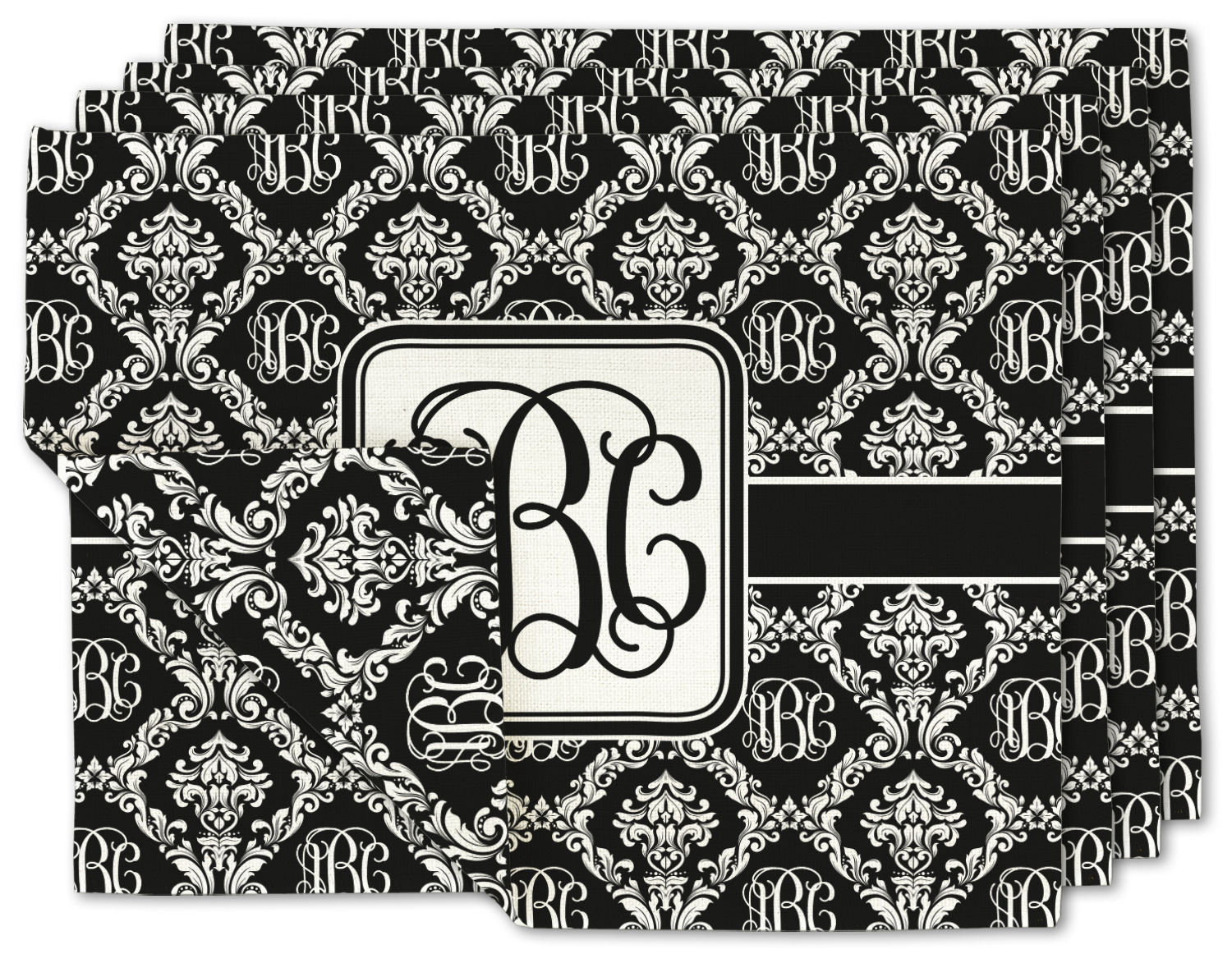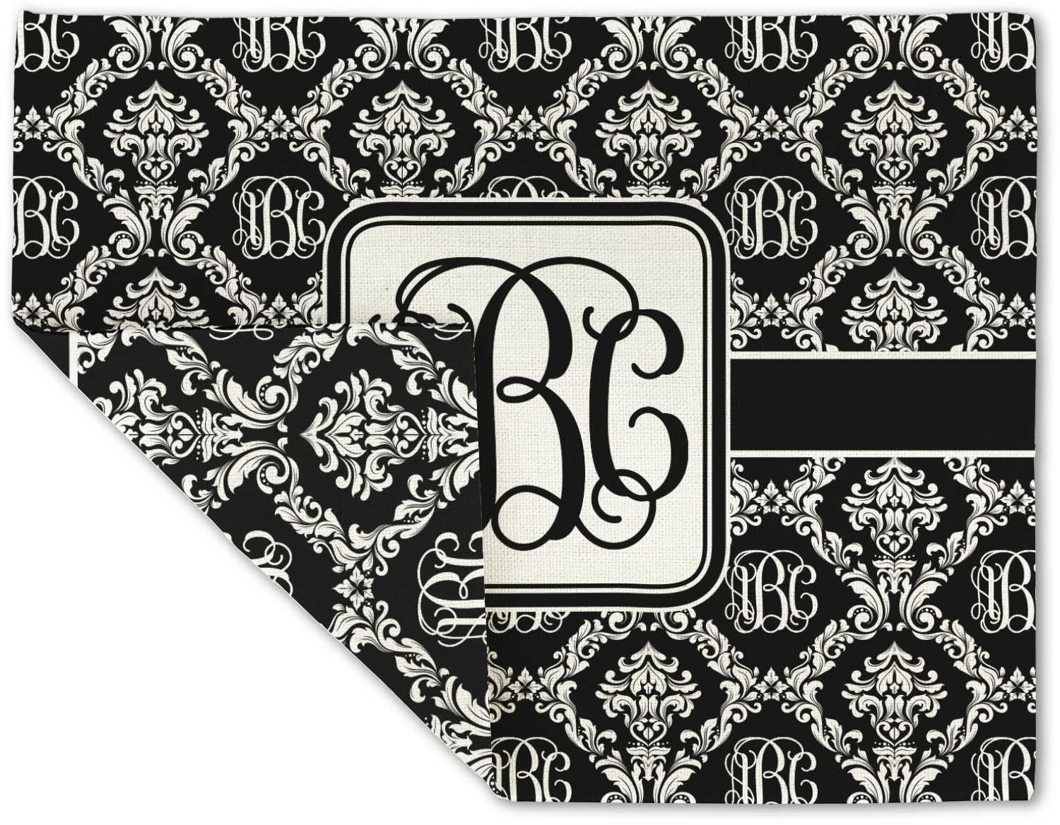 By far our most popular print. This design is a combination of two classics, damask and interlocking monogram. Put them together and you get this very unique design that has your interlocking monogram as part of the damask pattern.