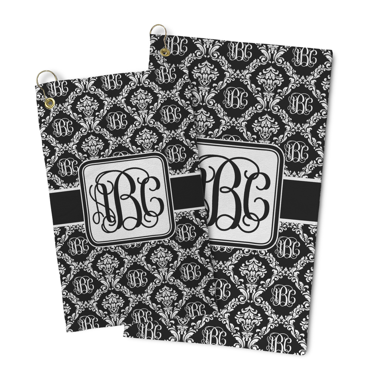 By far our most popular print. This design is a combination of two classics, damask and interlocking monogram. Put them together and you get this very unique design that has your interlocking monogram as part of the damask pattern.