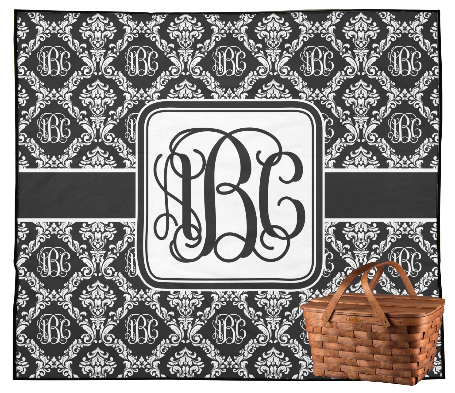 By far our most popular print. This design is a combination of two classics, damask and interlocking monogram. Put them together and you get this very unique design that has your interlocking monogram as part of the damask pattern.