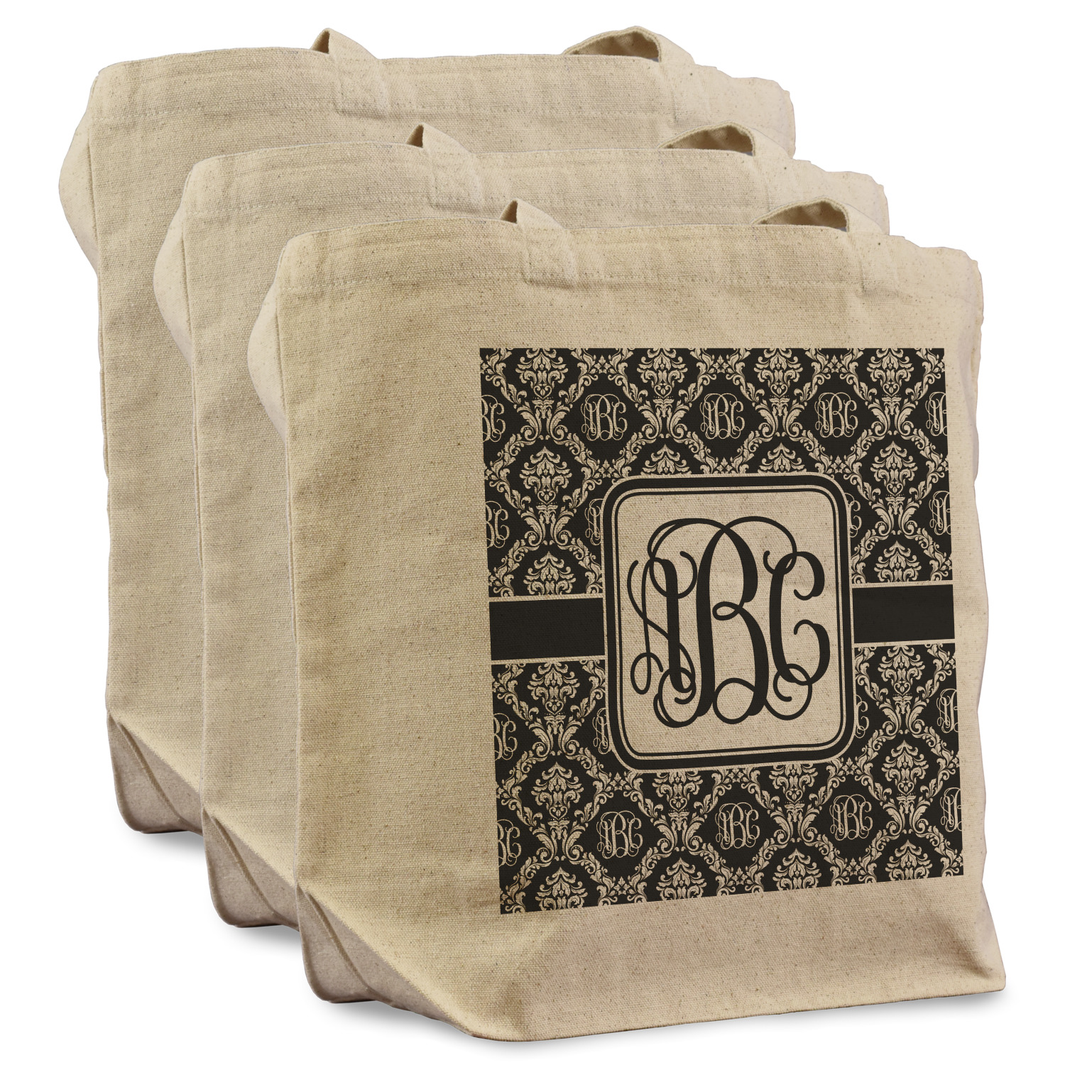 By far our most popular print. This design is a combination of two classics, damask and interlocking monogram. Put them together and you get this very unique design that has your interlocking monogram as part of the damask pattern.