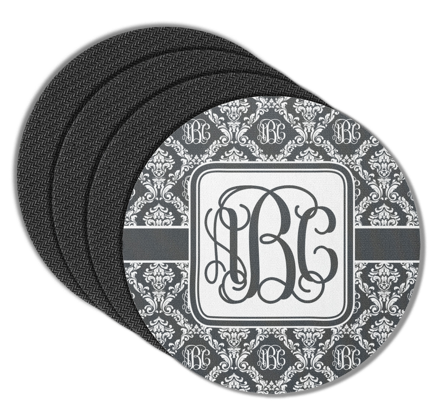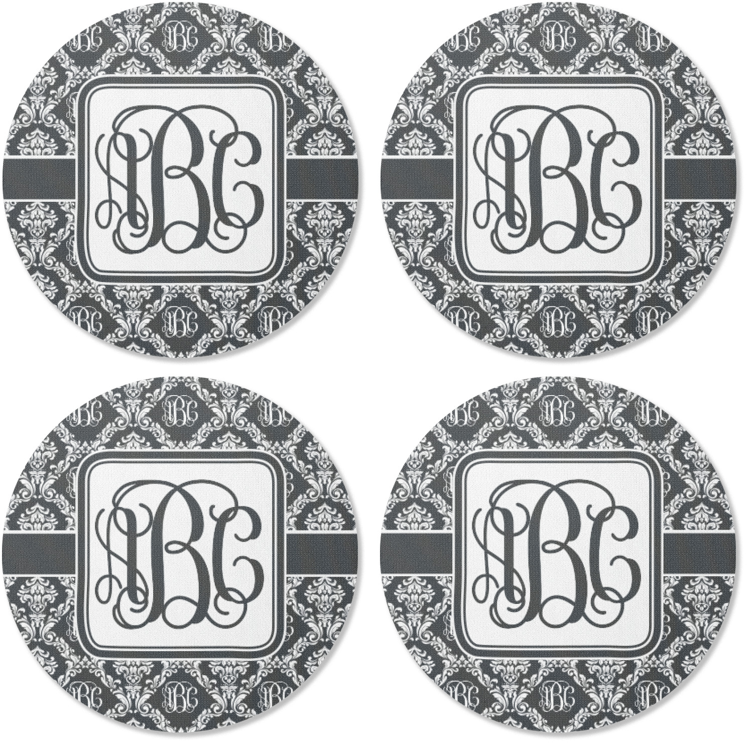 By far our most popular print. This design is a combination of two classics, damask and interlocking monogram. Put them together and you get this very unique design that has your interlocking monogram as part of the damask pattern.