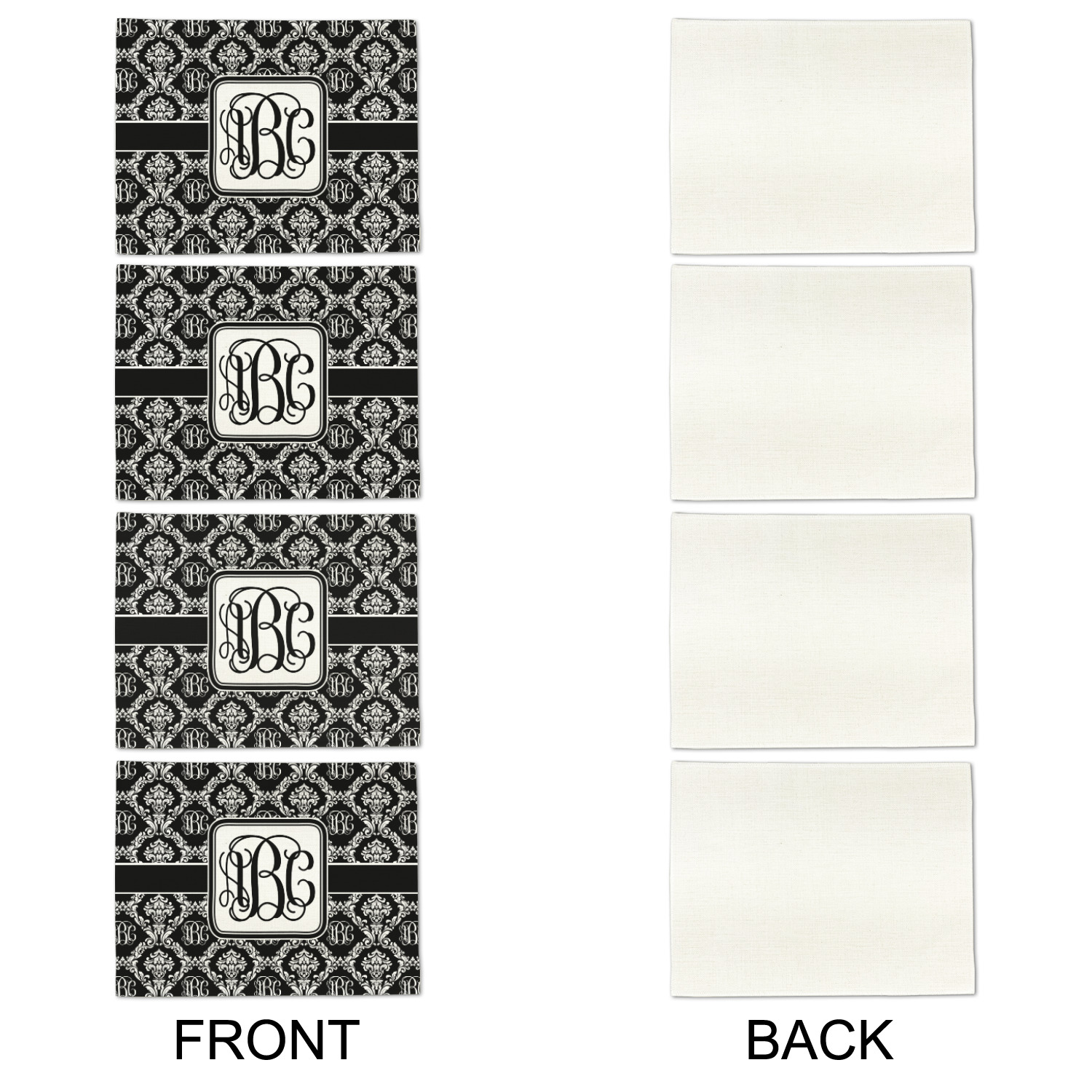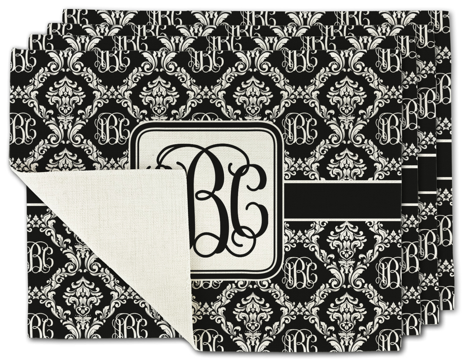 By far our most popular print. This design is a combination of two classics, damask and interlocking monogram. Put them together and you get this very unique design that has your interlocking monogram as part of the damask pattern.