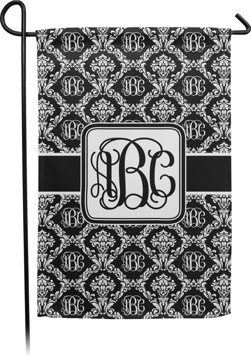 These custom garden flags are made of a durable, double-ply, polyester weave, allowing them to withstand the elements year round. The small flags measure at approximately 12 by 18 inches. The large flags measure out to 28 by 37 inches. You can order these decorative flags with your customization printed on the front only, or the front and back.