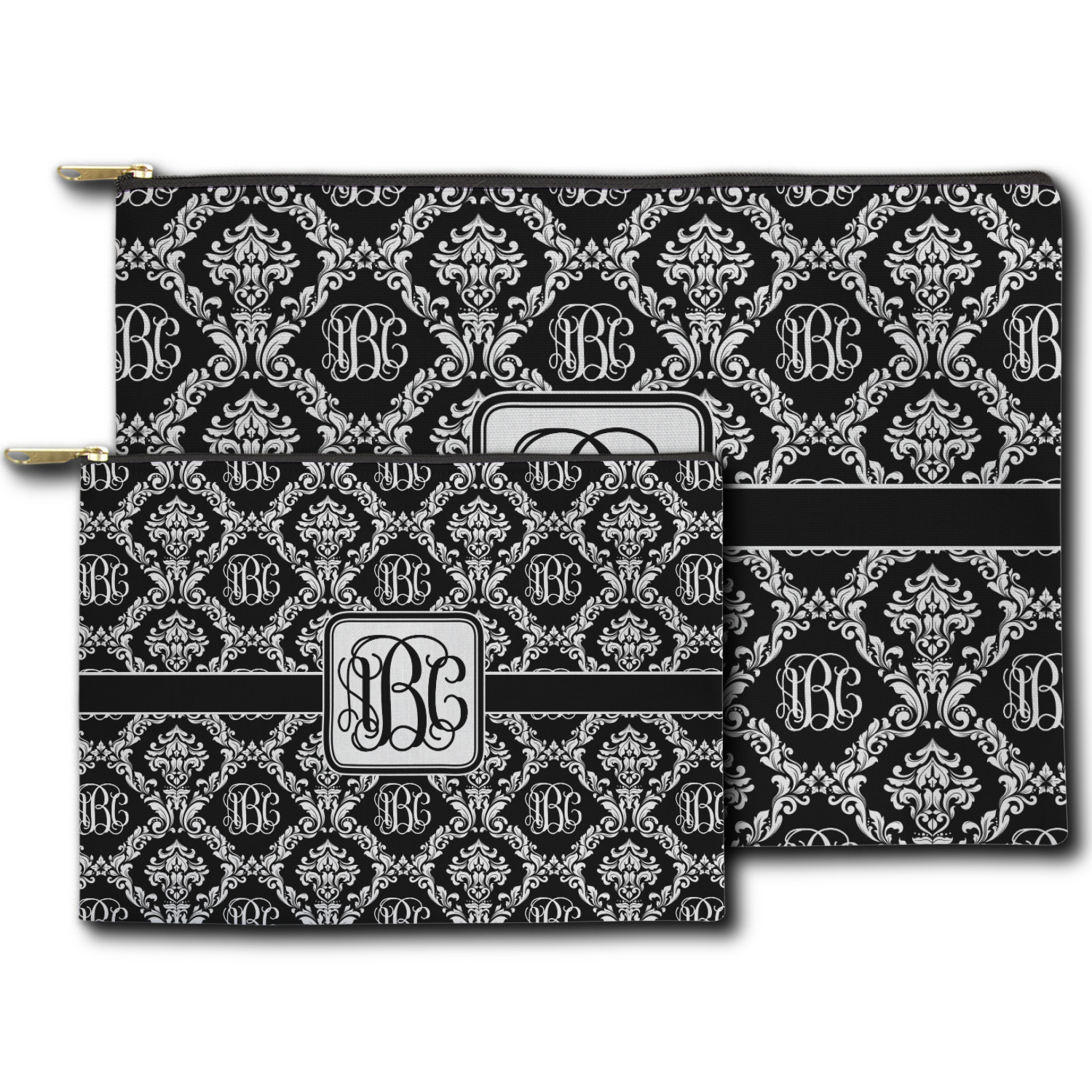 You can design both the front and the back of the pouch - same design, two complementary designs or two totally different designs - the choice is yours! We offer many different personalization styles i.e. name, name & initial, monograms - so the choice to personalize is also yours.