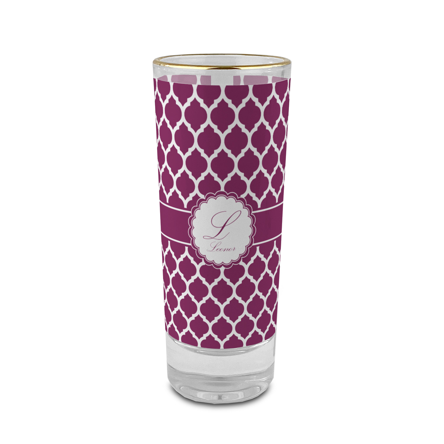 These glass shooter glasses are printed in full color with the design of your choice. These are a tall shooter 2 oz size and stand 4" tall. The print is a full wrap design to boldly display your personalization.