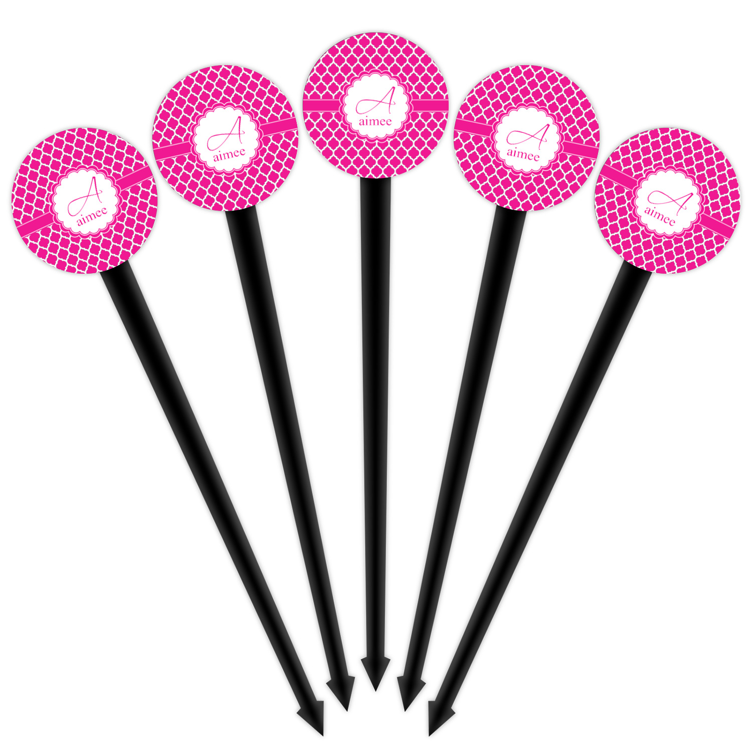 Our plastic cocktail picks have a round disc on top that is printed in full color with your event theme, colors, your logo, your photo, names, initials, monograms etc.