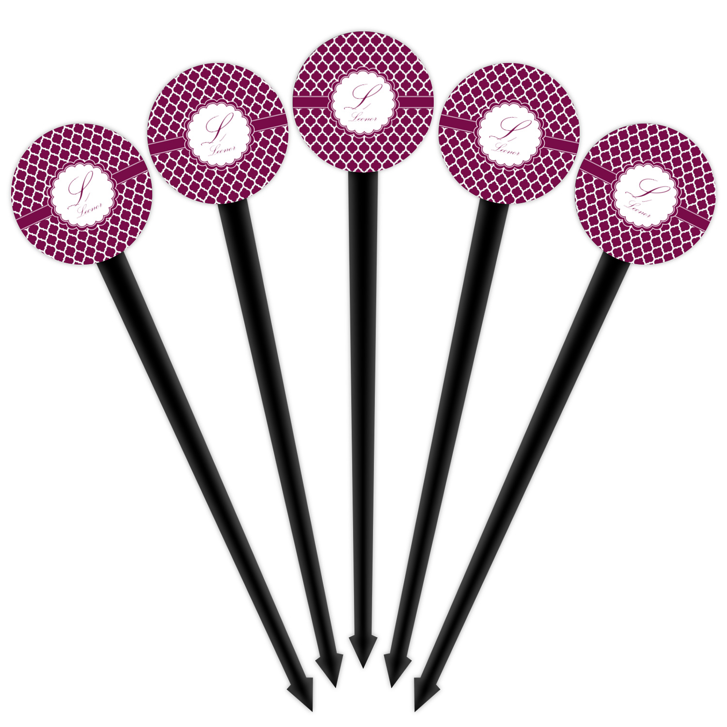Our plastic cocktail picks have a round disc on top that is printed in full color with your event theme, colors, your logo, your photo, names, initials, monograms etc.