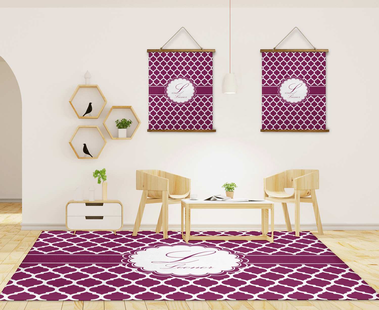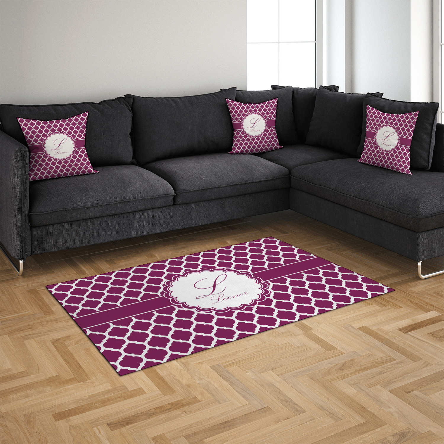 Area rugs add color and warmth to any room in the house, so create a custom area rug to suit your personal style and match it to the colors in your home. Have it personalized with a monogram, initial, name or a combination of these - the choice is yours.